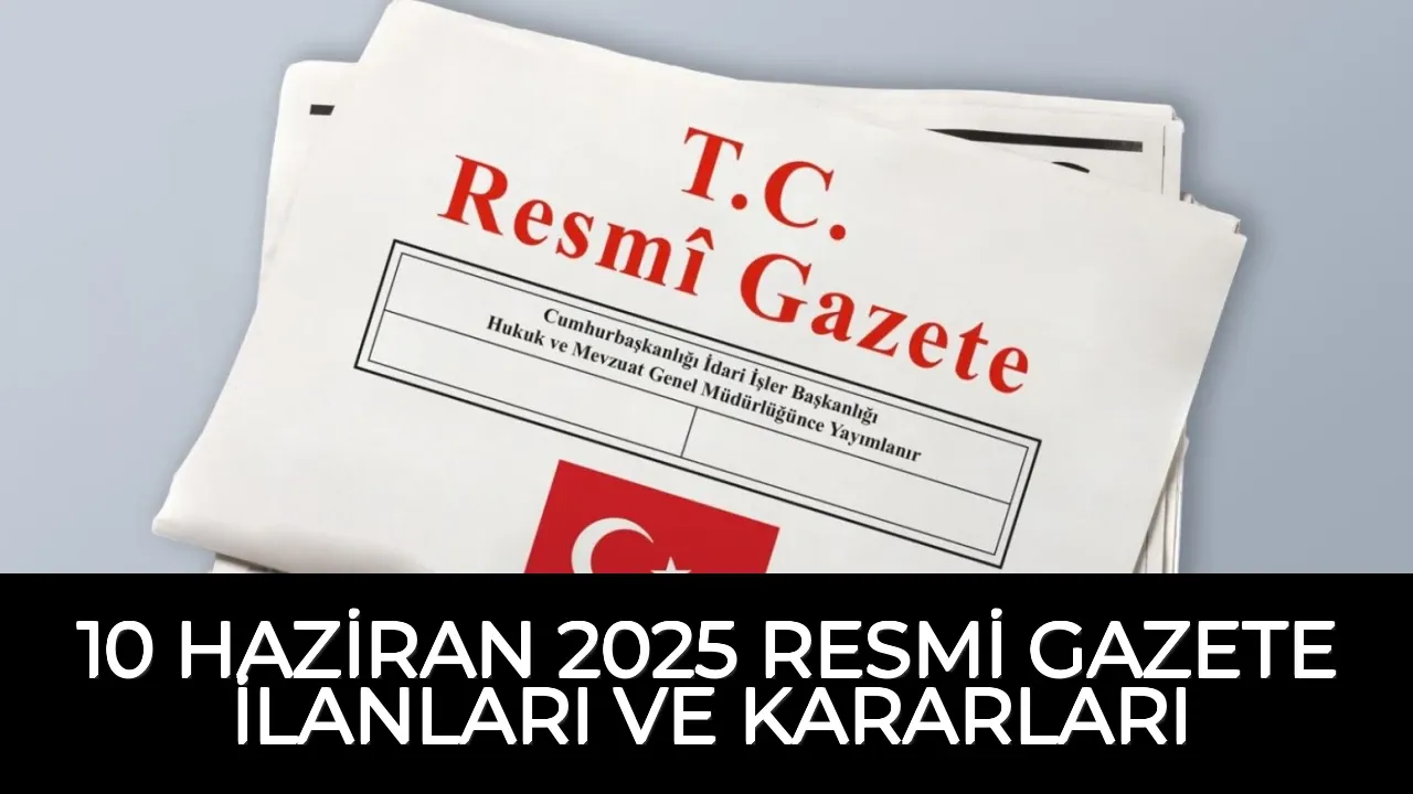 Kurban Bayramı’nın sona ermesi ile birlikte tüm yurtta mesai başladı. Bayram boyunca, 4 gün yayımlanmayan Resmi Gazete de, bayramdan sonra ki ilk gün olan 10 Haziran 2025 Salı itibariyle yayımlandı. Resmi Gazete’de yer alan kararlar ve ilanlar haberimizde derlenmiştir.