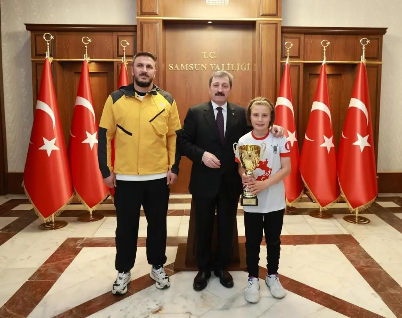 Cihangir Pehlivan, altın madalyasıyla Samsun Valisi Orhan Tavlı’yı ziyaret etti ve başarılarından ötürü tebrik aldı.