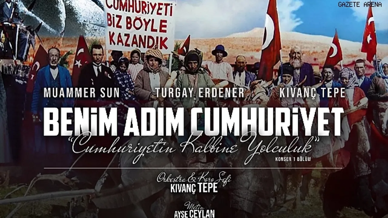 Muammer Sun, Turgay Erdener, Kıvanç Tepe gibi çok değerli Türk bestecilerin eserlerinden oluşan özel repertuarıyla seyirciyle buluşacak olan “Benim Adım Cumhuriyet” konserinde orkestra ve koro sanatçıları, solistler, dansçılar ve anlatıcılar yer alacak.