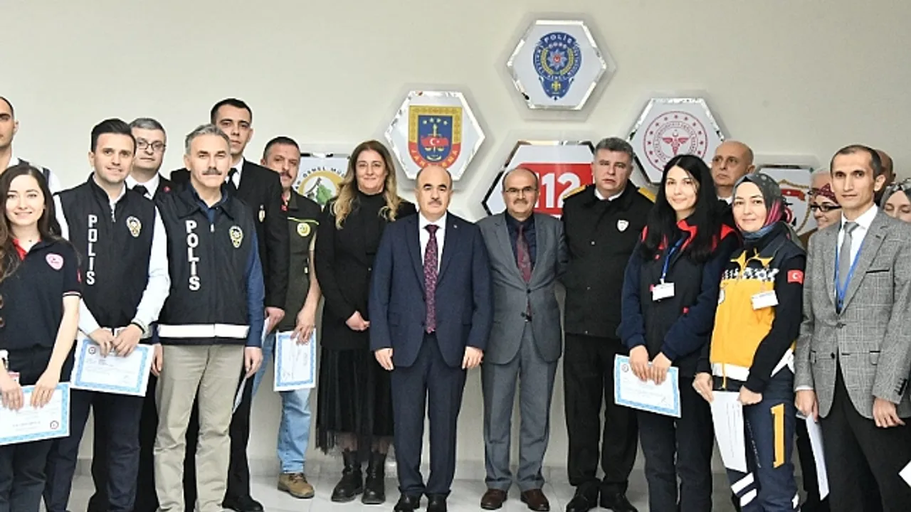 112 Acil Çağrı Merkezi hattına asılsız ihbarda bulunan ve gereksiz yere meşgul eden kişilere idari para cezası uygulandığını ve aramanın niteliğine göre suç duyurusunda da bulunulduğunu hatırlatan Dağlı, toplantının ardından 2022 Yılı Performans Değerlendirmesi sonucu başarı belgesi almaya hak kazanan personele belgelerini vererek, özverili çalışmalarından dolayı teşekkür etti ve görevlerinde kolaylıklar diledi. İHA