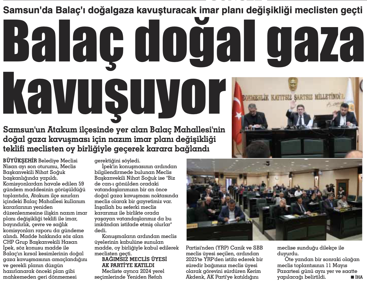 Samsun'da o mahalle doğalgaza kavuşuyor. Samsun Büyükşehir Belediye Meclisi’nin oy birliğiyle aldığı karar sonrası Atakum’da bir mahalle daha doğalgaza kavuşuyor. Altyapı çalışmalarının planlamaya dahil edilmesiyle birlikte, bölgedeki ısınma sorununun kalıcı olarak çözülmesi hedefleniyor. Samsun ve gündemdeki tüm gelişmeler için güncel haber takibi devam ediyor.