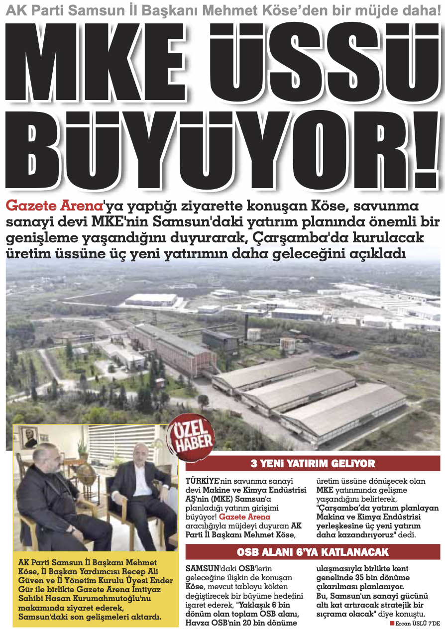 Samsun'a yatırım yağmuru devam ediyor. AK Parti Samsun İl Başkanı Mehmet Köse, Gazete Arena ziyaretinde Samsun’a önemli bir yatırım müjdesi verdi. Projenin detaylarının önümüzdeki günlerde netleşmesi beklenirken, Samsun'un ekonomik kalkınmasına yönelik adımların hız kazanacağı vurgulandı.