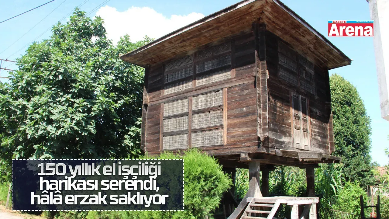 Samsun’un Çarşamba ilçesi Kirazlıkçay Mahallesi’nde bulunan ve “serendi” olarak bilinen ahşap depo, yaklaşık 150 yıllık geçmişiyle dikkat çekiyor. Doğal yapısı ve işlevselliği sayesinde zamana meydan okuyan yapı, mısır, fasulye ve fındık gibi ürünleri bozulmadan muhafaza edebiliyor.