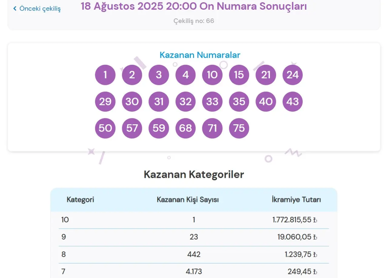 10 Numara 18 Ağustos 2025 Çekiliş Sonuçları!