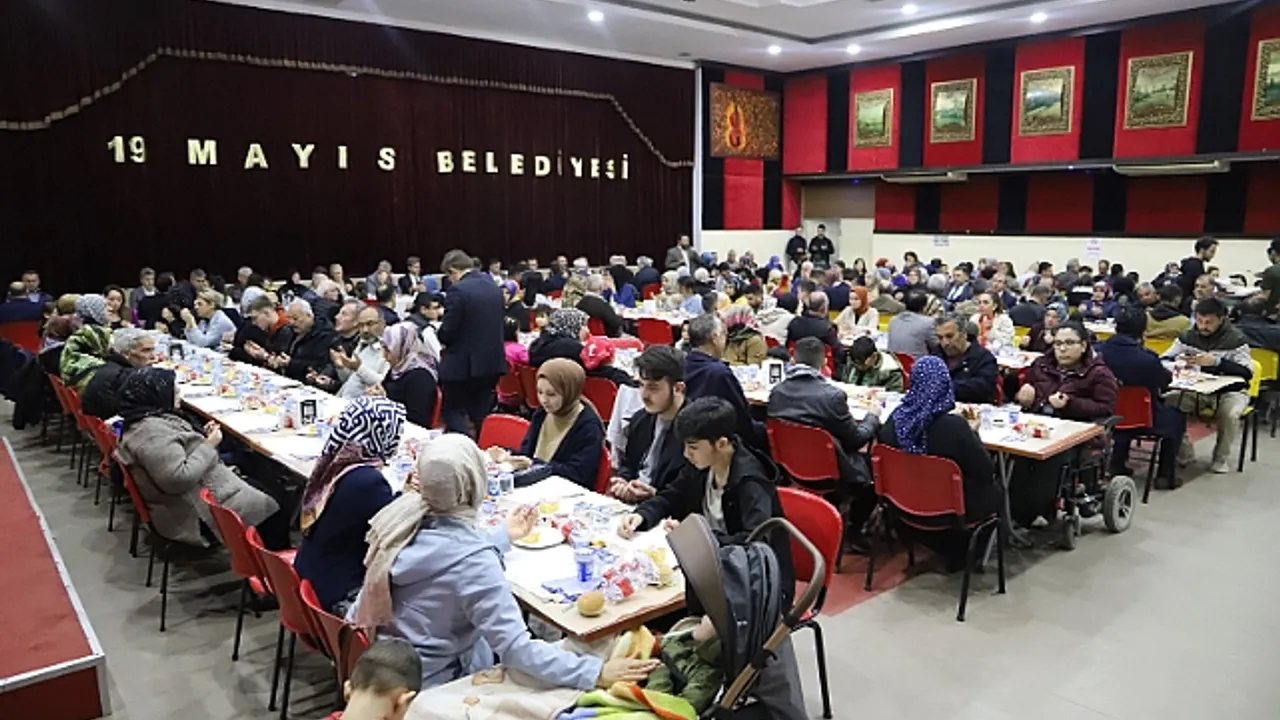 Kahramanmaraş merkezli depremlerden etkilenen ve 19 Mayıs ilçesinde misafir edilen depremzede aileler, şehit ve gazi aileleri ile engelli vatandaşlar, 19 Mayıs Belediye Düğün Salonunda, belediyenin düzenlediği iftar programında bir araya geldi.