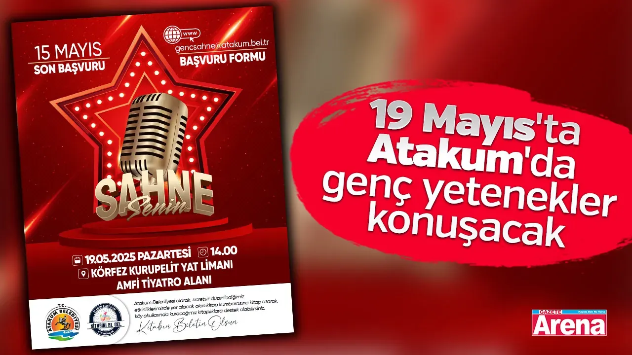 Atakum Belediyesi, 19 Mayıs Atatürk’ü Anma, Gençlik ve Spor Bayramı kapsamında gençlerin sanatla buluşacağı özel bir etkinliğe imza atıyor. “19 Mayıs’ta Sahne Senin” adlı programla genç müzisyenler yeteneklerini sahneye taşıyacak. Körfez Kurupelit Yat Limanı Amfi Tiyatro’da kurulacak sahnede gerçekleştirilecek etkinlik için başvurular 15 Mayıs 2025 Perşembe günü sona erecek.