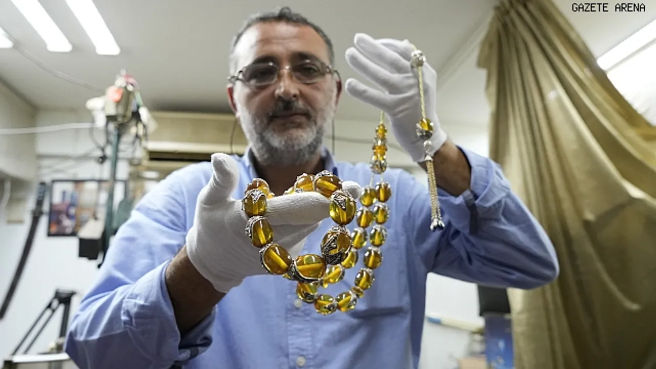 4 tesbihin değerinin 200 bin doların üzerinde olduğunun altını çizen Voyvalako, “Ama maddi değerinden ziyade manevi değeri çok önemli. Bunlar artık ülkemizin bir kültür mirasıdır. Daha önce hiç yapılmamış. Kültür mirası olarak yaptık. İstiyoruz ki ülkemizde kalsın. Bu bir tasarım, yüzlerce yıldır tesbih çekilmiş ama böyle bir şey yapışmamış. Tesbihler dünya genelinde hep standarttır. Oyulmuş, yuvarlak yapılmış, bırakılmış. Ama biz, tesbihin üstüne altını, gümüşü, pırlantayı getirip birebir yerleştirip mıhlama yaptık. Yani bunları buradan sökmek mümkün değil artık. Biz bunu tasarladık. Aslında kehribarla altını birbirine geçirdik, yapıştırdık, öpüştürdük. Tamamen bir bütün bir obje haline getirdik" diye konuştu.