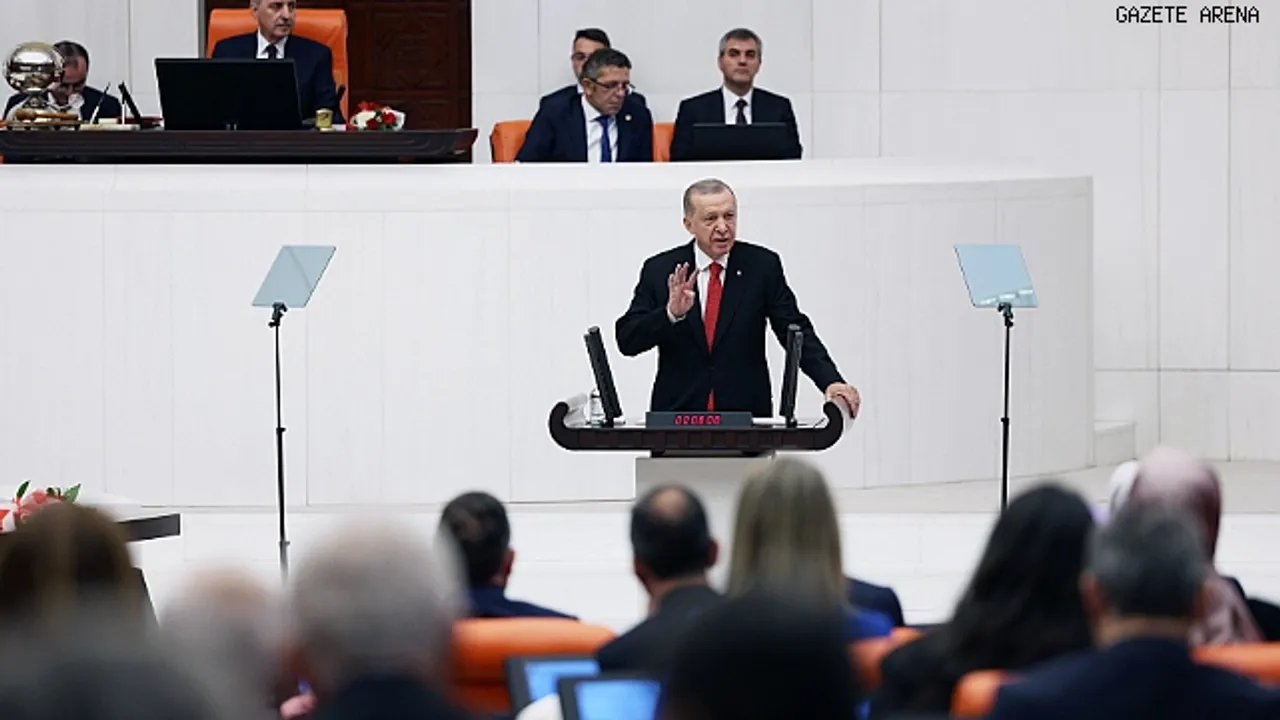 Mecliste tartışarak, uzlaşarak ve neticede Türkiye ortak paydasında buluşarak başarabileceklerini ifade eden Erdoğan, “Cumhuriyetimizin 100. yılına kavuşmanın haklı gururunu yaşadığımız 2023 senesini ülkemiz, milletimiz ve demokrasimiz açısından yeni bir dönemin müjdecisi haline getirmek bizlerin elindedir. Burada beraber konuşarak, tartışarak, uzlaşarak ve neticede Türkiye ortak paydasında buluşarak başarabiliriz. Demokrasiyi diğer yönetim tarzlarına göre üstün kılan en önemli vasfı, toplumsal müşterekleri artırmaya imkan tanımasıdır. Demokrasiyi güçlendirmek, bu bakımdan milletin birliğini bütünlüğünü bir arada barış ve huzur içinde yaşama iradesini de güçlendirmek demektir. Hakarete, iftiraya ve yalana varmadığı sürece her türlü tenkide milletimize faydası dokunacak her türlü teklife açık olduğumuzu tekrar vurgulamak istiyorum. Biz her hal ve şart altında doğru bildiklerimizi ülkemizin hayrına olduğuna inandığımız hususları açık yüreklilikle dillendirmeye devam edeceğiz. Elbette haksızlıklar karşısında susmayacağız. Milletin sandıkta bizlere emanet ettiği muazzez iradesine kesinlikle leke sürdürmeyeceğiz. Vesayetin her türlüsüne karşı bugüne kadar olduğu gibi bundan sonra göğsümüzü siper edeceğiz. Türkiye'yi ve Türk milletinin çıkarlarını küresel arenada cesaretle savunurken hiç kimseden çekinmeyeceğiz. Ama istiklal ve istikbalimiz adına verdiğimiz bu mücadeleyi mümkün olan en geniş zeminde ve mutabakatla yürütmenin çabası içinde olacağız. Şu meclis çatısı altında ülkemize hizmet gayesiyle çalışan siyasi partilerin 85 milyonunun her bir ferdinin birikiminden istifade etmeye gayret edeceğiz. Meclisimizin yeni yasama yılının yeni bir iş birliği ruhuna kapı aralamasını ümit ediyorum. Rabbim yar ve yardımcımız olsun diyorum. Bu duygularla bir kez daha Türkiye Büyük Millet Meclisimizin 28. Dönem ikinci yasama yılının hayırlı olmasını diliyor, milletvekillerimize yeni yasama yılında Mevla'dan başarılar temenni ediyorum” dedi.