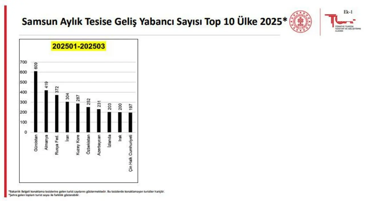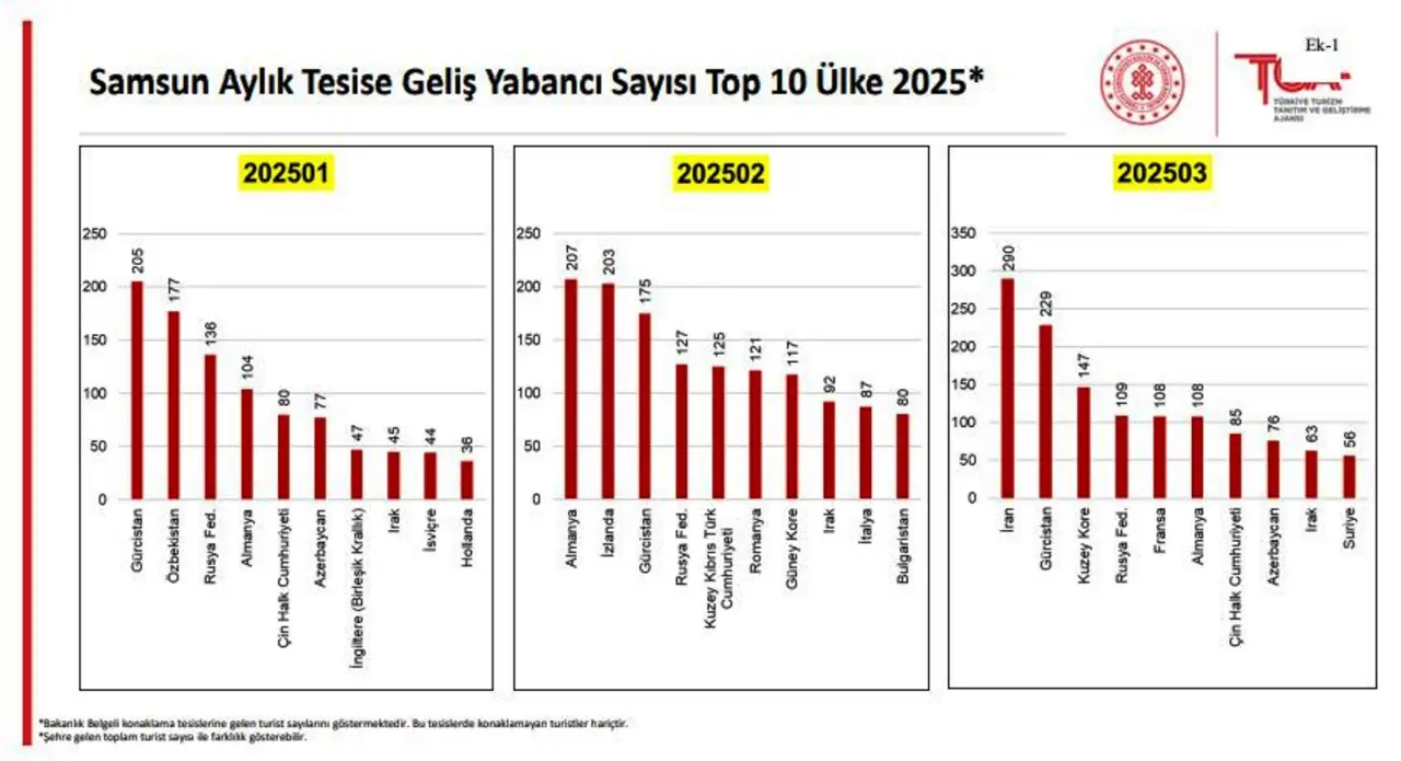 Bu üç aylık süreçte Samsun’da en fazla konaklayan yabancı uyruklu turist sayıları şu şekilde açıklandı: