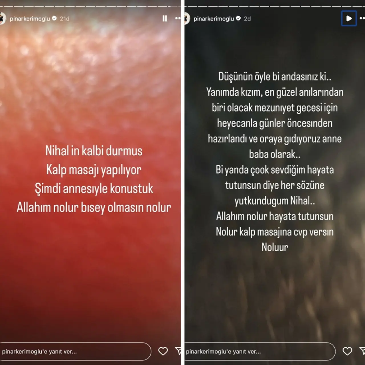 "Kızım makineye bağlı durumda. Organları çok zorlanıyor. Herkesin dualarına ihtiyacımız var."