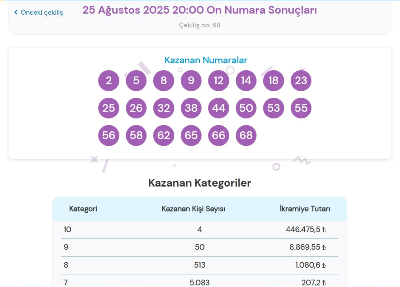 25 Ağustos On Numara Çekilişi Sonuçları Açıklandı