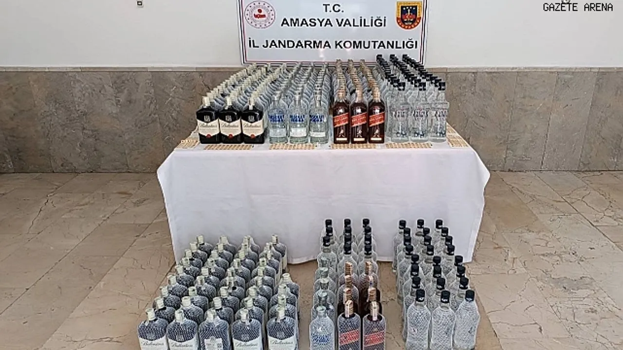 Edinilen bilgiye göre, Amasya İl Jandarma Komutanlığı ekiplerince kaçakçılık ile mücadele çerçevesinde yürütülen çalışmalar neticesinde Merzifon ilçesinde içerisinde 3 şüphelinin bulunduğu araçta arama yapıldı. 298 litre sahte içki ve 96 adet sahte bandrol ele geçirildi.
