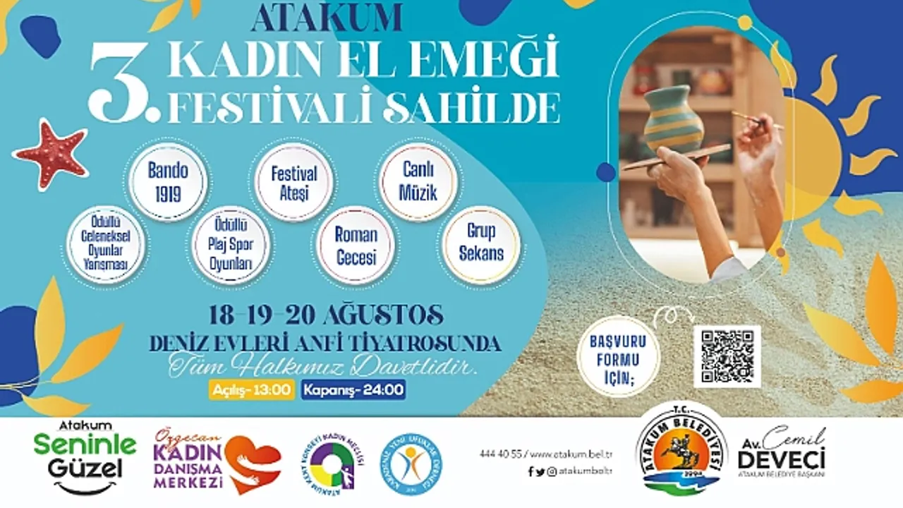 Atakum Belediyesi, Karadeniz Yeni Ufuklar Derneği, Atakum Kent Konseyi Kadın Meclisi ve Özgecan Kadın Danışma Merkezi iş birliğinde ‘3. Atakum Kadın Emeği Festivali Sahil’de’ etkinliği düzenleniyor. Festival; 18-19- 20 Ağustos tarihlerinde Denizevleri Amfi Tiyatrosu’nda 13.00- 00.00 saatleri arasında gerçekleştirilecek. Festival programında, kadın emeği ürünlerinin yanı sıra geleneksel ödüllü yarışmalar, spor aktiviteleri ve canlı müzik yer alacak.