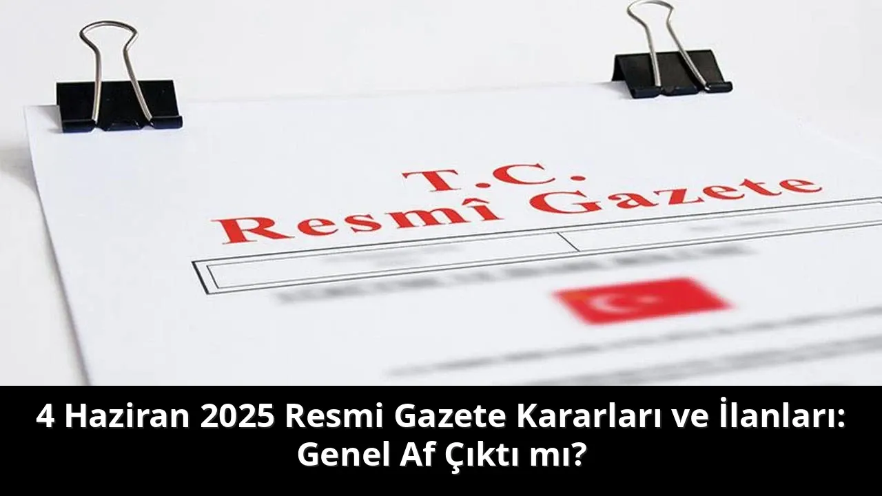 Milyonlarca kişinin Resmi Gazete’de yayımlanacak kararlara dair beklentisi devam ediyor. Ehliyet affından mahkumlara ceza indirimine, iş ilanlarından ihale ilanlarına kadar beklentisi olan vatandaşların gözünü çevirdiği Resmi Gazete’de 4 Haziran 2025 Çarşamba günü yer alan kararlar…