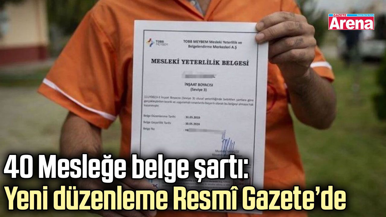 Resmî Gazete’de yayımlanan yeni düzenleme ile tehlikeli ve çok tehlikeli sınıfta yer alan 40 meslek için mesleki yeterlilik belgesi zorunluluğu getirildi. Düzenleme kapsamında, Mesleki Yeterlilik Kurumu tarafından belirlenen standartlara uygun mesleklerde çalışanların artık Mesleki Yeterlilik Belgesi bulundurması gerekecek.