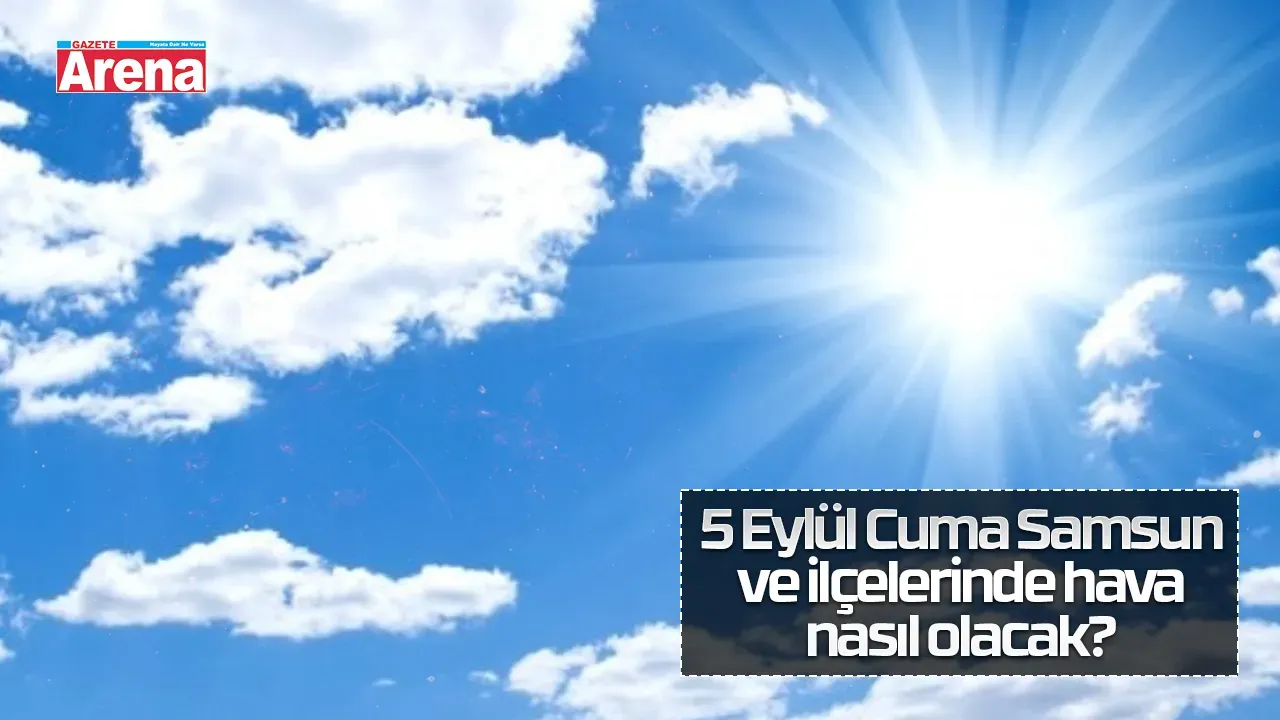 Meteoroloji Genel Müdürlüğü’nün son tahminlerine göre, 5 Eylül Cuma günü Samsun genelinde hava az bulutlu ve parçalı bulutlu geçecek. İl genelinde yağış beklenmezken, sıcaklık değerleri ilçelere göre farklılık gösterecek.