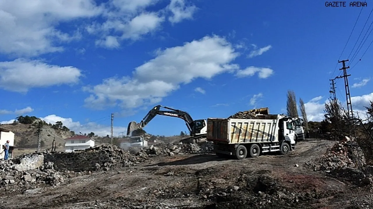 53 yapının yandığı köyde enkaz kaldırma çalışmaları devam ediyor