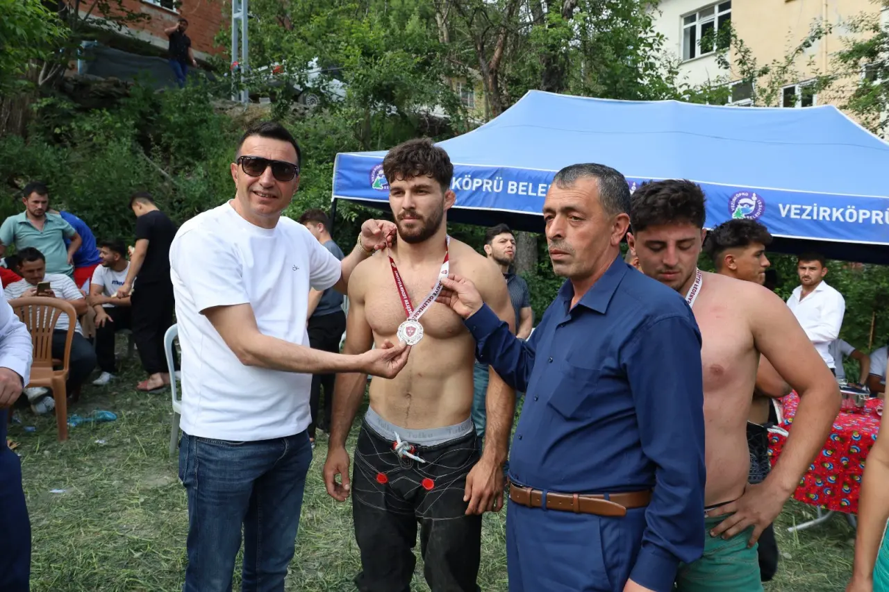 Düğün güreşleri, İstiklal Marşı’nın okunması ve Kur’an-ı Kerim tilavetiyle başladı. Cazgır manileri eşliğinde gerçekleştirilen müsabakalarda, başpehlivanlık unvanını Burhan Sezer’i yenen Mertcan Damatoğlu aldı.