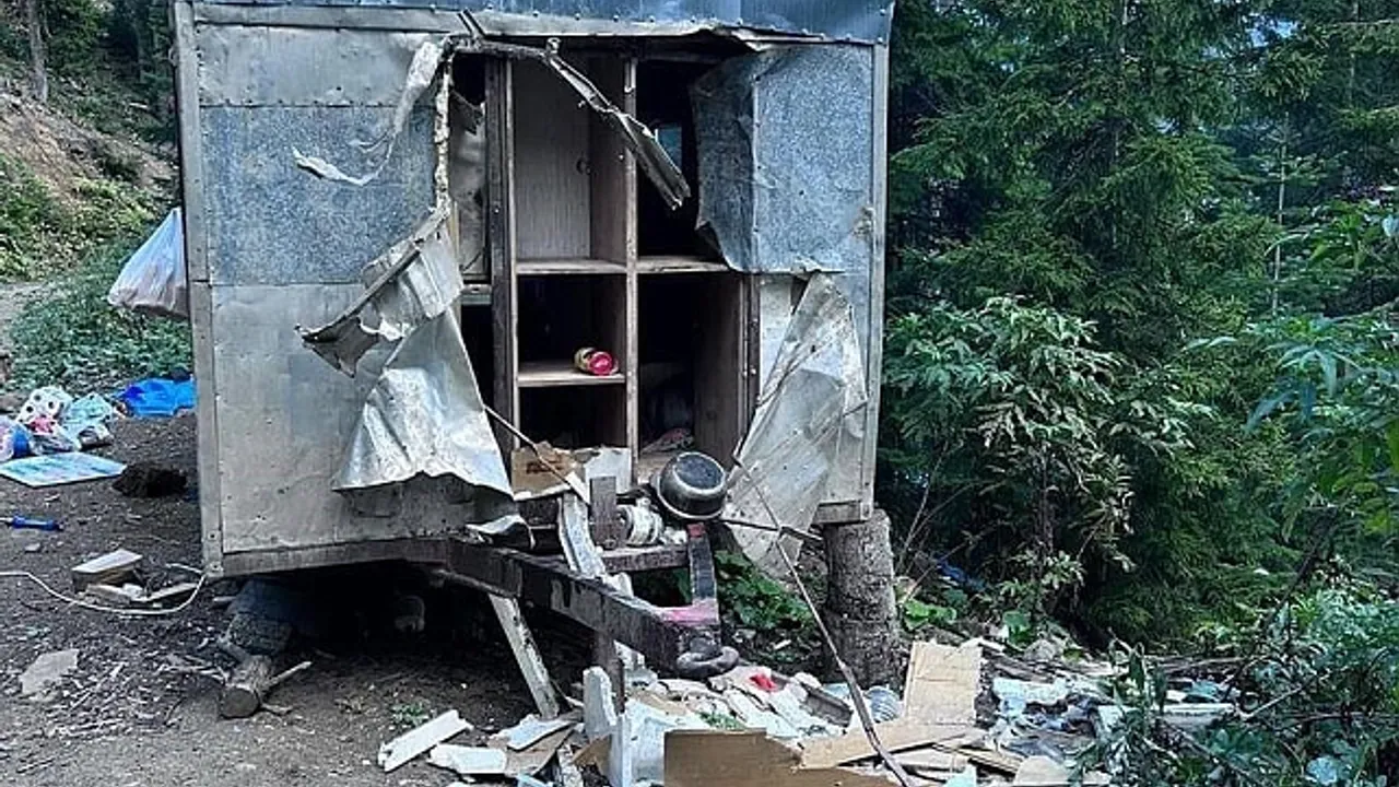 Artvin merkeze sağlı Sarıbudak köyü yaylasında orman işçilerine ait karavana ayı girdi. Ayı, kapısını kırarak girdiği karavanı yiyecek ararken harabeye çevirdi.