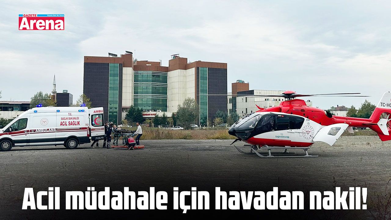 Terme Devlet Hastanesinin bahçesine inen ambulans helikopter, hastayı alarak Samsun Eğitim ve Araştırma Hastanesine götürdü.