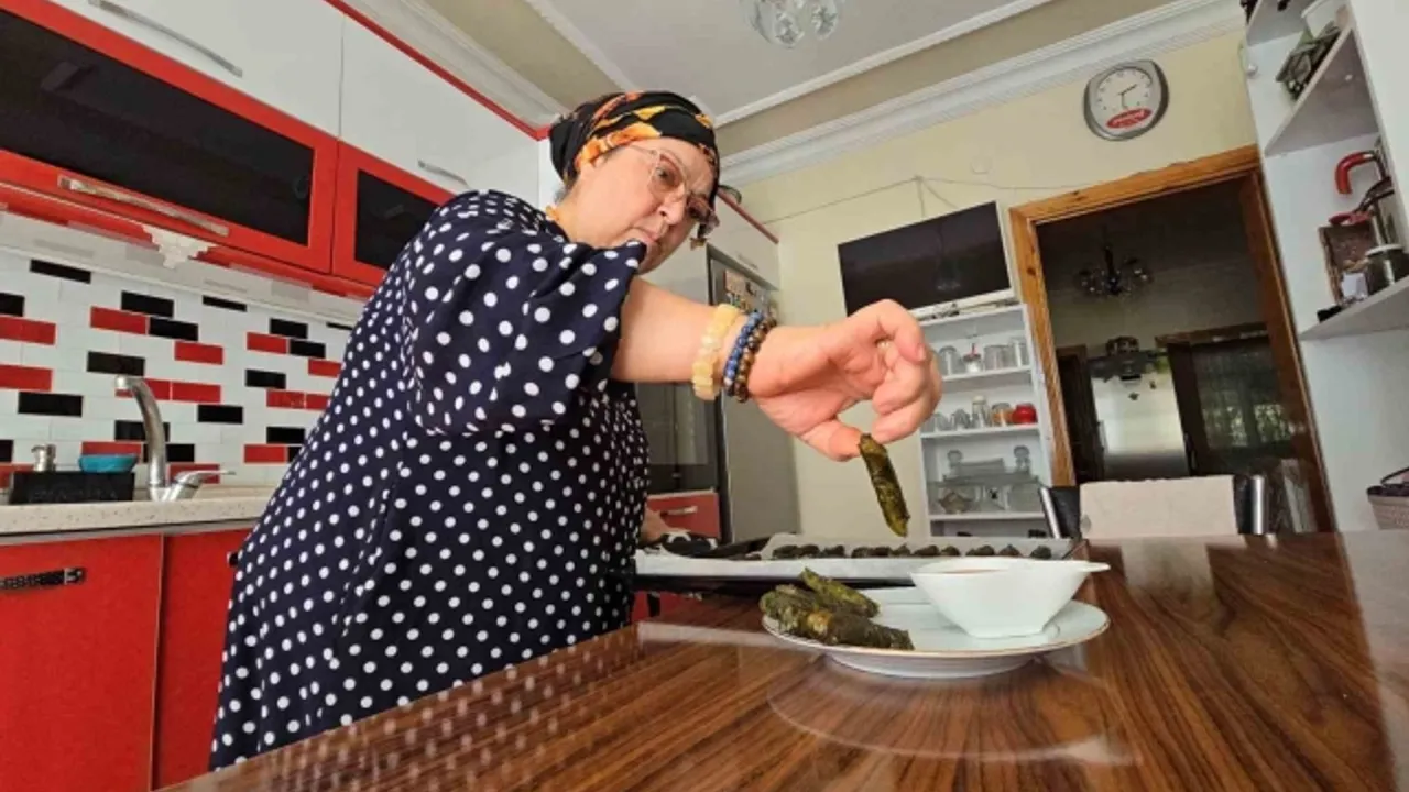 Tokatlı ev hanımı Havva Çiftçier, üzüm yaprağından yaptığı ve erik marmelatıyla sunduğu tatlıyla yaprak sarmasına farklı bir boyut kazandırdı.