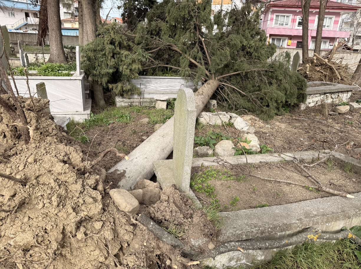 Devrilen ağaçların çevredeki bazı mezarların üst yapılarına zarar verdiği bildirildi. Olayın ardından hasar tespit çalışmalarının başlatıldığı, zarar gören mezar taşlarının belediye ekiplerince onarılacağı öğrenildi. Öte yandan mezarlıkta daha önce aydınlatma, temizlik ve çevre düzenleme çalışmaları yapıldığı belirtildi. Bu kapsamda mezar içi aydınlatma için 12 metre uzunluğunda 2 poligon direk dikildiği, her direkte 4 150 watt projektör bulunduğu, 35 oturma bankının yenilendiği, biriken dip çökeltilerin temizlendiği ve 80 yeni ağaç dikildiği kaydedildi. Yetkililer, olumsuz hava koşullarına karşı vatandaşları dikkatli olmaları konusunda uyardı.