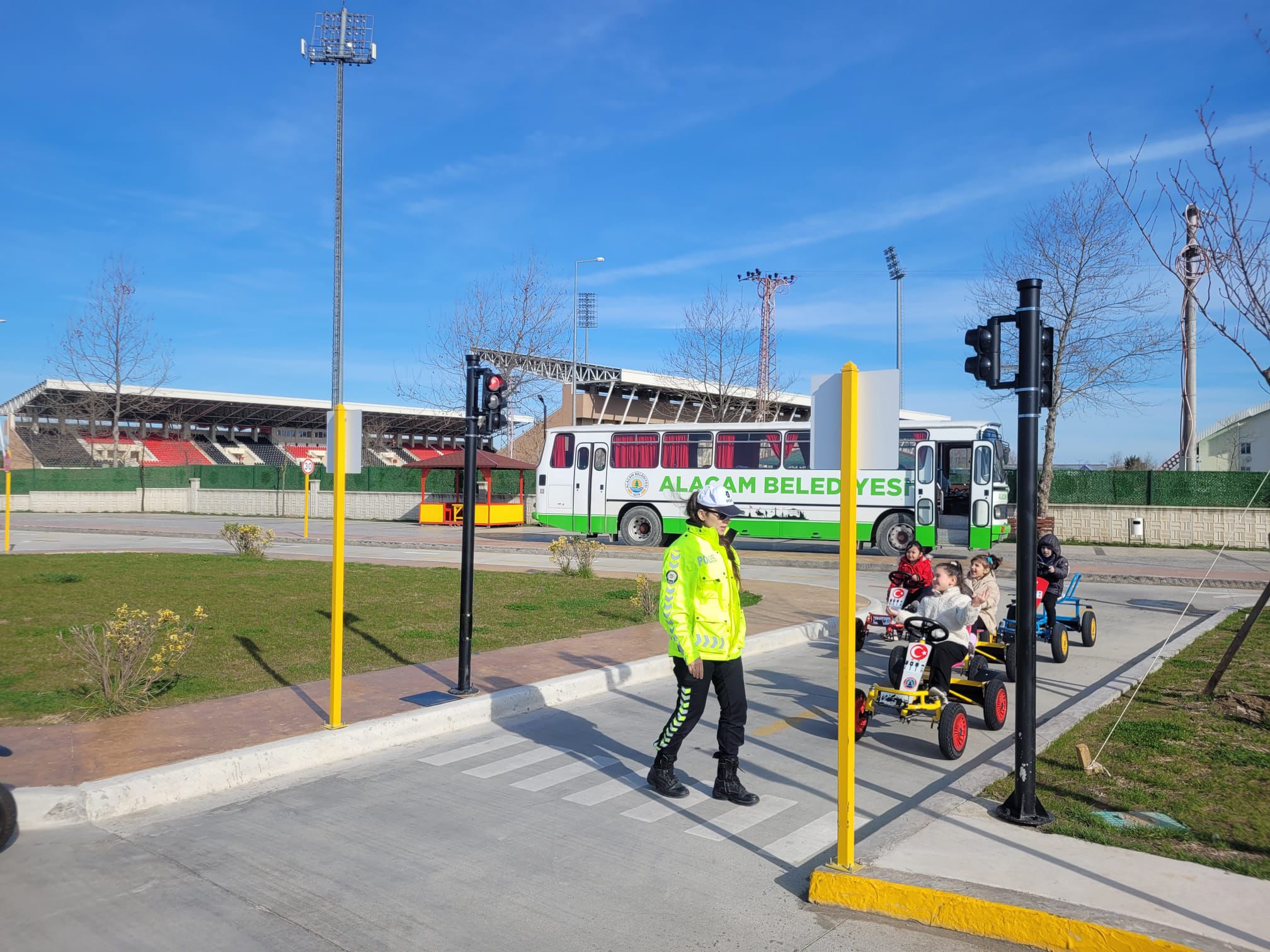 Bu kapsamda Alaçam Cumhuriyet İlkokulu öğrencileri, uygulamalı eğitim için Bafra Çocuk Eğitim Parkı’na götürüldü. Programda öğrencilere trafik ışıkları, yaya geçidi kullanımı ve güvenli geçiş kuralları hem teorik hem de uygulamalı olarak anlatıldı. Emniyet personeli tarafından gerçekleştirilen eğitimlerde çocukların aktif katılım sağlaması dikkat çekti.