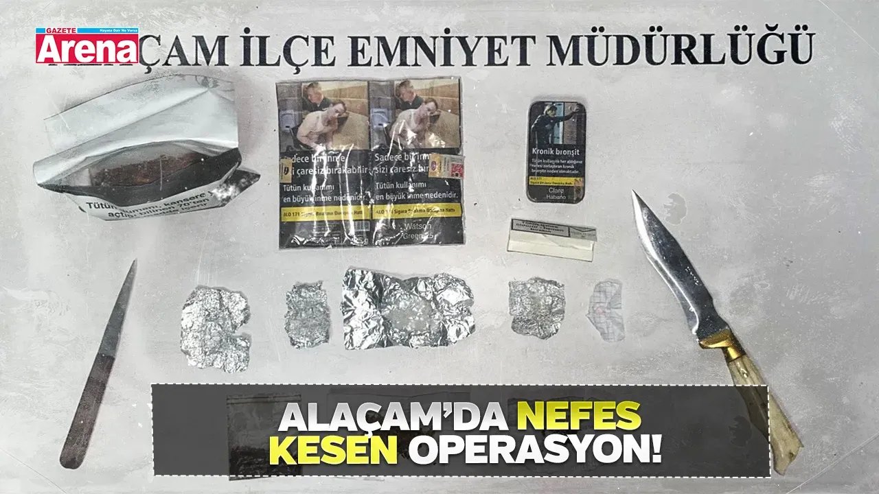Samsun’un Alaçam ilçesinde gerçekleştirilen uyuşturucu operasyonunda, bir kişinin aracında ve üzerinde çeşitli miktarda uyuşturucu madde ile bıçak ele geçirildi. Şüpheli E.A. hakkında adli işlem başlatıldı.Alaçam İlçe Emniyet Müdürlüğü ekiplerinin yürüttüğü çalışma kapsamında E.A. (37) isimli şahsın üzerinde ve aracında arama yapıldı. Yapılan aramalarda 41,63 gram sentetik uyuşturucu, 2,04 gram esrar, bir adet sentetik uyuşturucu hap ve iki adet amaç dışı kullanılan bıçak ele geçirildi.