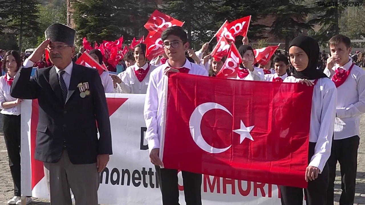 Taşova ilçesinde düzenlenen 29 Ekim Cumhuriyet Bayramı kutlamalarında “Dededen Toruna Emanettir Cumhuriyet” pankartıyla alana gelen çocuklar, Kıbrıs gazisi Muammer Torun’un verdiği Türk bayrağını öperek devraldı. Programda Yeşilırmak Şehit Ferhat Bolat İlkokulu öğretmen ve öğrencilerin oluşturduğu ay yıldızlı 100. yıl logolu koreografi ise ilgiyle izlendi.