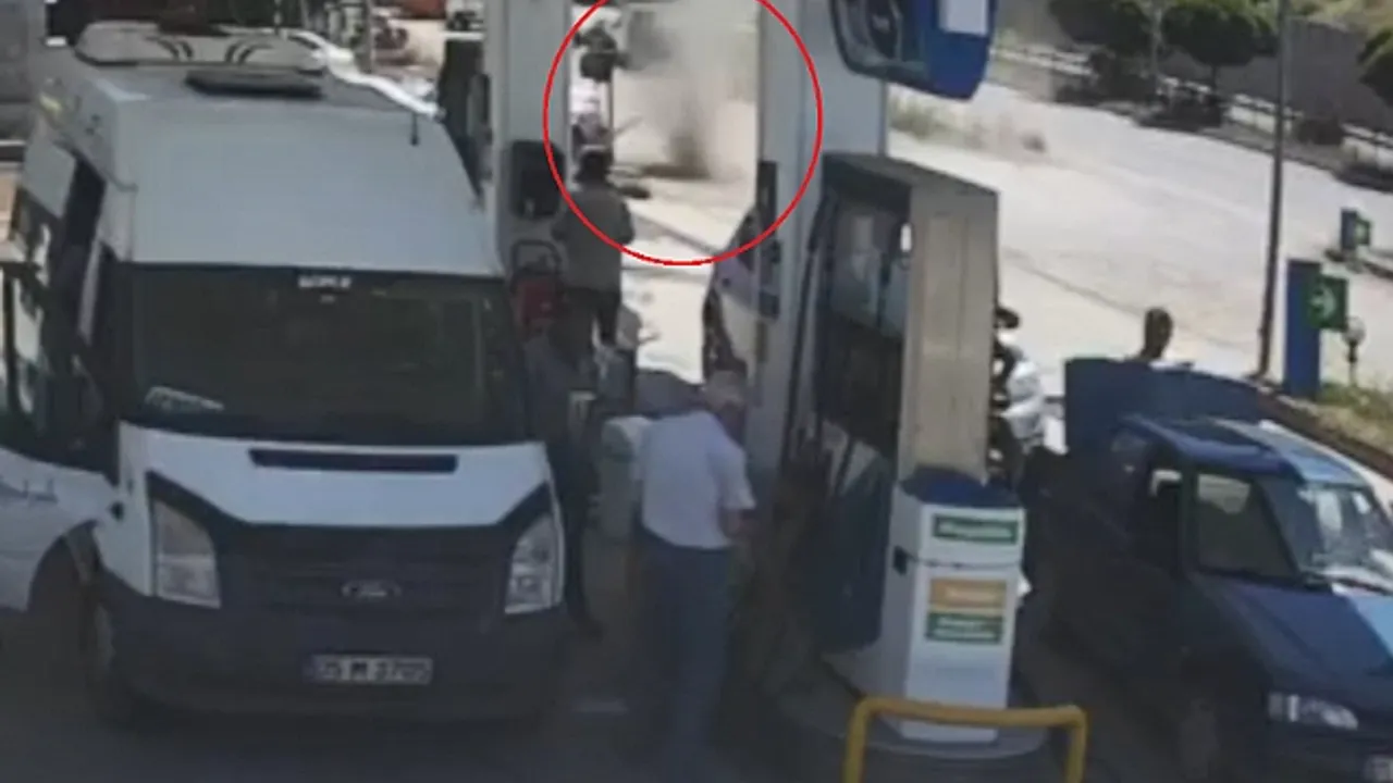 Yolda beliren hortum hızla bir akaryakıt istasyonunun önünden geçti. O esnada istasyonda olanlar yanlarından hızla geçen tehlikeyi, güvenlik kameralarındaki görüntüleri izlediklerinde fark etti.