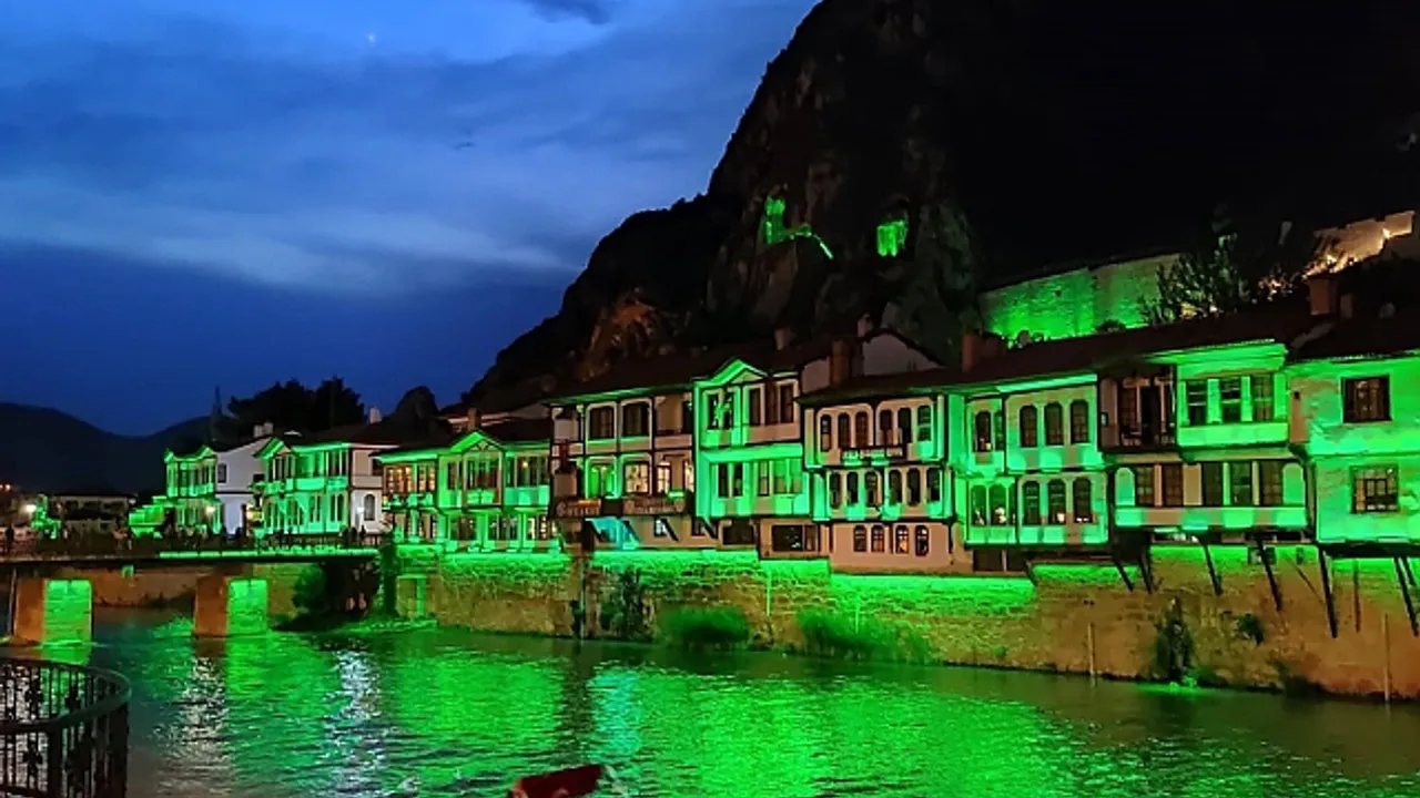 Amasya Valiliği, Yeşilay Amasya Şubesi’nin 26 Haziran Uyuşturucu Kullanımı ve Kaçakçılığıyla Mücadele Günü farkındalık etkinliğine destek oldu. Yeşilırmak’ın kıyısındaki Osmanlı döneminden kalma konaklar, köprüler, Harşena Dağı ile kral kaya mezarlarını kapsayan 29 bin metrekarelik alandaki Türkiye’nin en büyük açık alan aydınlatma sistemi yeşil rengi aldı. 2 bin 362 led ışığın turuncu renkteki görüntüsünü görenler o anları fotoğrafladı.