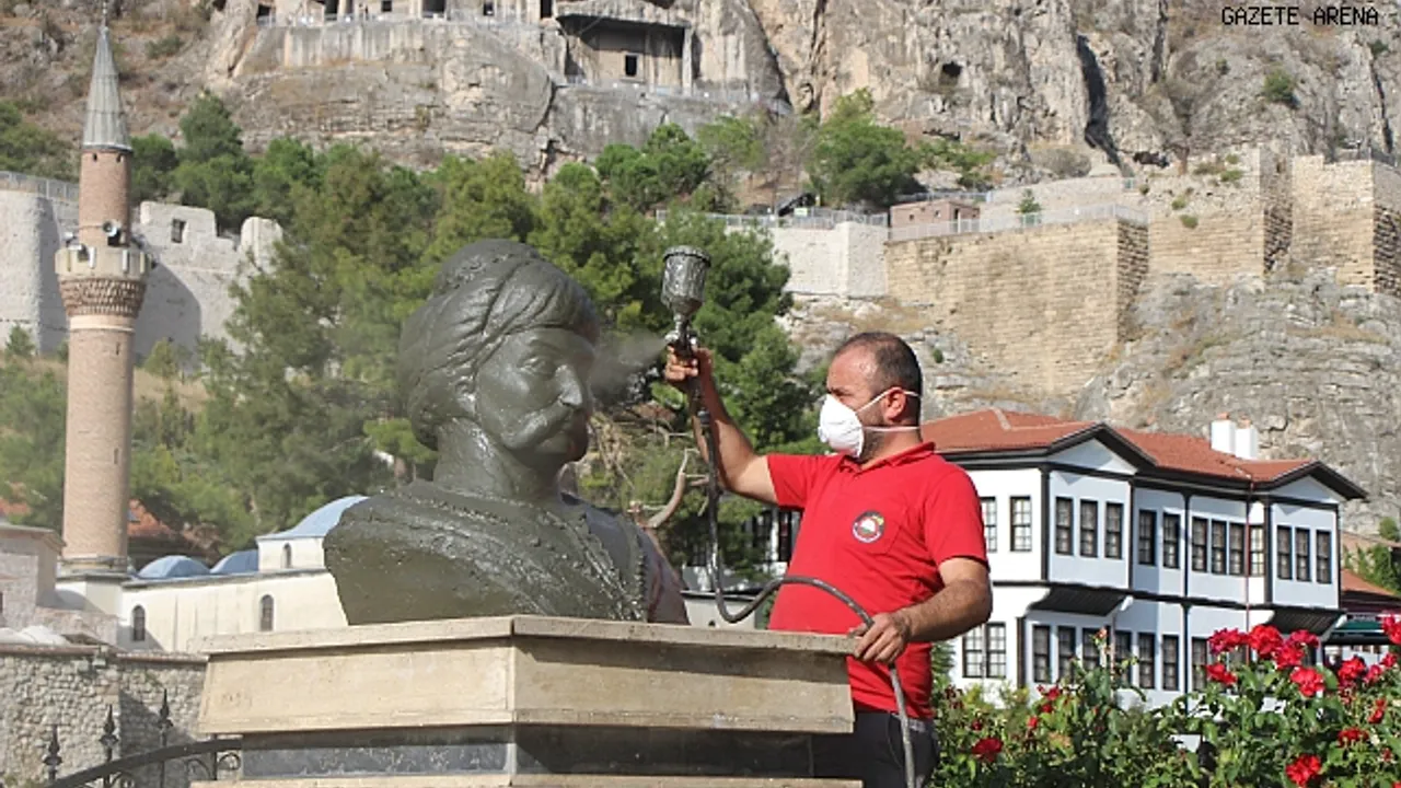 Amasya Belediye Başkanı Dr. Bayram Çelik’in talimatıyla yapılan çalışmada belediye ekipleri ayrıca ilk coğrafyacı Strabon ve Ferhat ile Şirin heykellerini de boyayarak elden geçirdi.