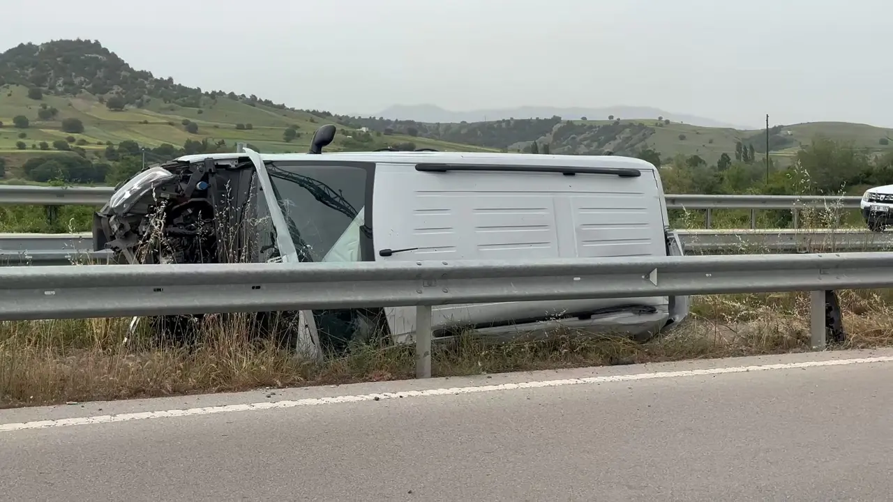 Kontrolden çıkan araç, refüjdeki demir bariyerleri aşarak yağmur suyu kanalına devrildi ve yan yatarak sürüklendi.