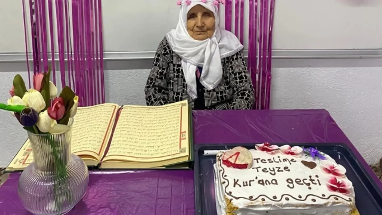 Amasya'nın Suluova ilçesinde yaşayan 82 yaşındaki Teslime Çoban, 4 ayda Kur'an-ı Kerim okumayı öğrendi. Çevresindekilerin 'Yaşlandın. Okuyamazsın' sözlerine aldırmayıp okumaya geçen Teslime Nine'ye pasta hazırlayan hocaları sevincini paylaştı.