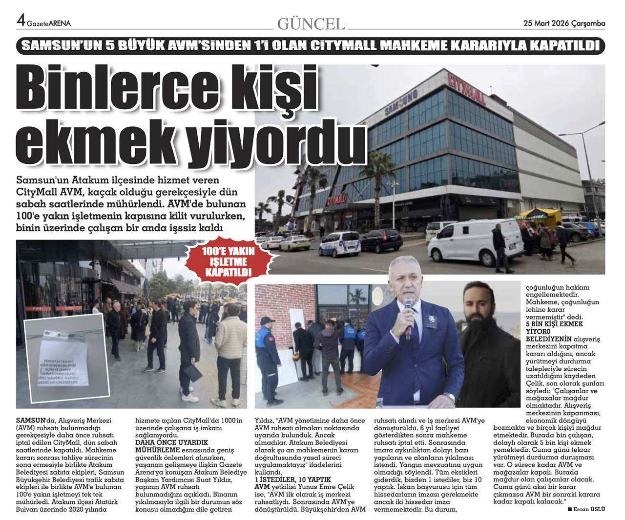Kentte ticari denetimler kapsamında dikkat çeken bir gelişme de alışveriş merkezleriyle ilgili yaşandı. Samsun’un 5 büyük AVM’sinden biri olan City Mall AVM hakkında, 24 Mart tarihinde ruhsatsız faaliyet gösterdiği gerekçesiyle mühürlendi. Çok sayıda kişiye istihdam sağlayan AVM yasal sürenin dolmasıyla birlikte kapanma süreci resmen başladı.
