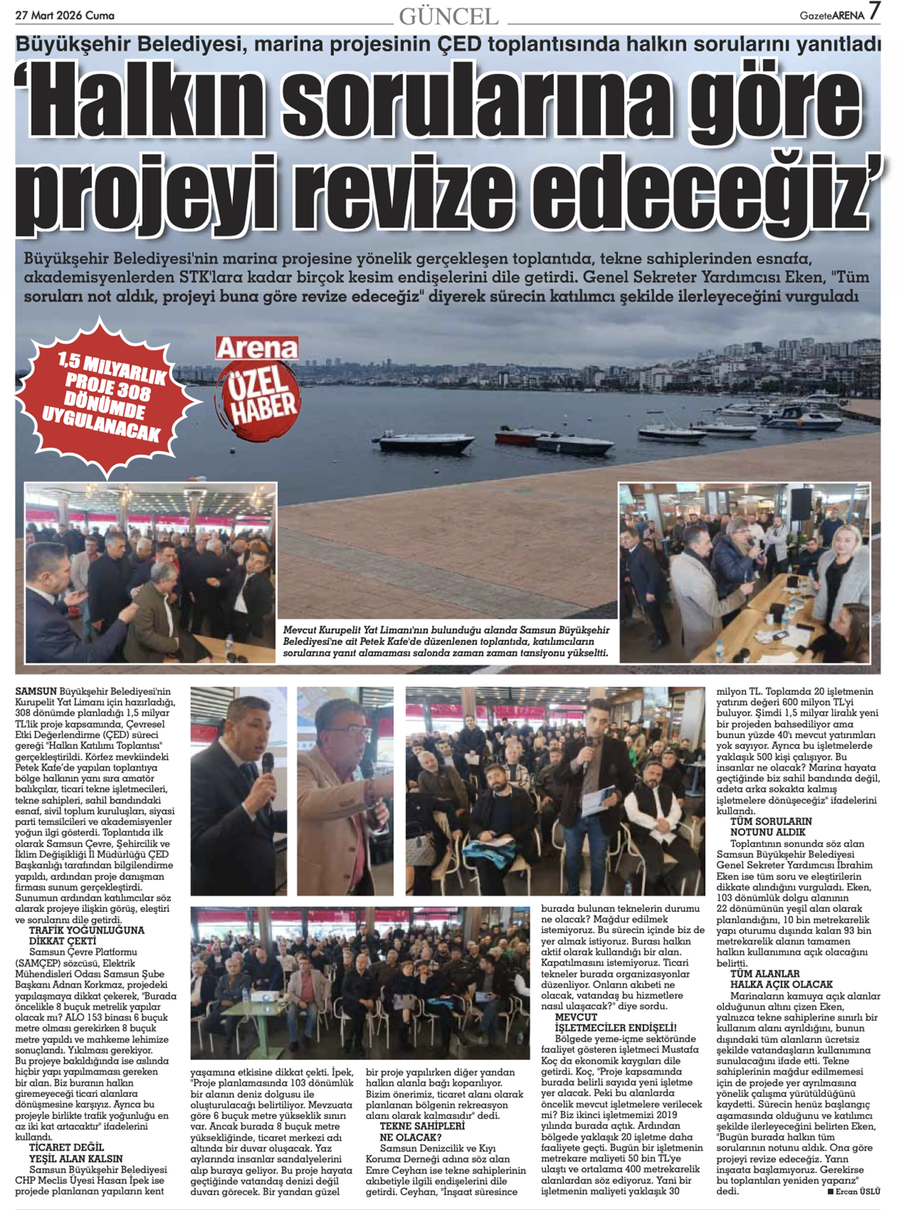 Şehrin en büyük yatırımları arasında gösterilen Kurupelit Yat Limanı Projesi’nde kritik bir aşamaya geçildi. Yaklaşık 1,5 milyar liralık dev yatırım kapsamında düzenlenen halkın katılımı toplantısında, bölge sakinleri ve sivil toplum kuruluşları projeye ilişkin görüşlerini paylaştı. Projenin, Samsun’un deniz turizmine önemli katkı sunması bekleniyor.