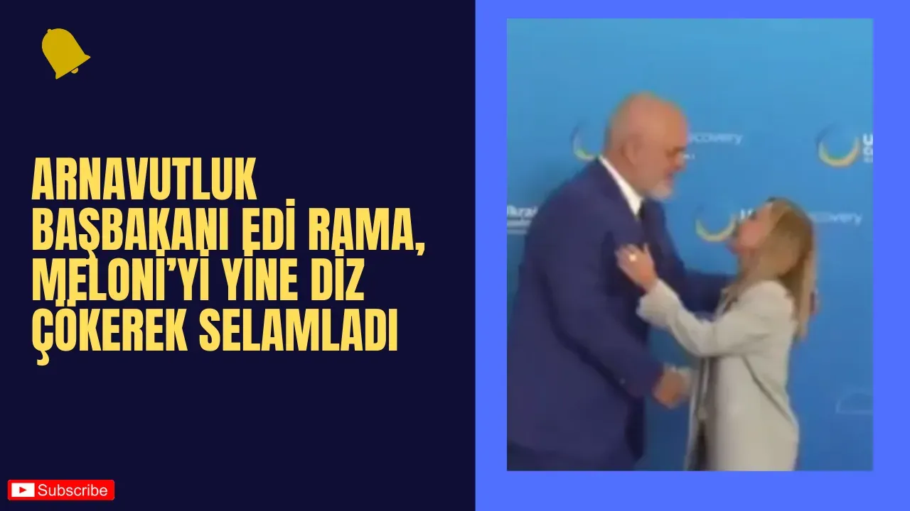 Arnavutluk Başbakanı Edi Rama, İtalya’nın başkenti Roma’da düzenlenen "Ukrayna'nın Yeniden İnşası Konferansı" sırasında İtalya Başbakanı Giorgia Meloni’yi bir kez daha diz çökerek selamlayarak dikkatleri üzerine çekti. Bu sıra dışı jest, konferansın açılış anlarına damga vurdu ve sosyal medyada geniş yankı buldu.Olay, 10 Temmuz 2025 tarihinde Roma’daki La Nuvola Konferans Merkezi’nde gerçekleşti.