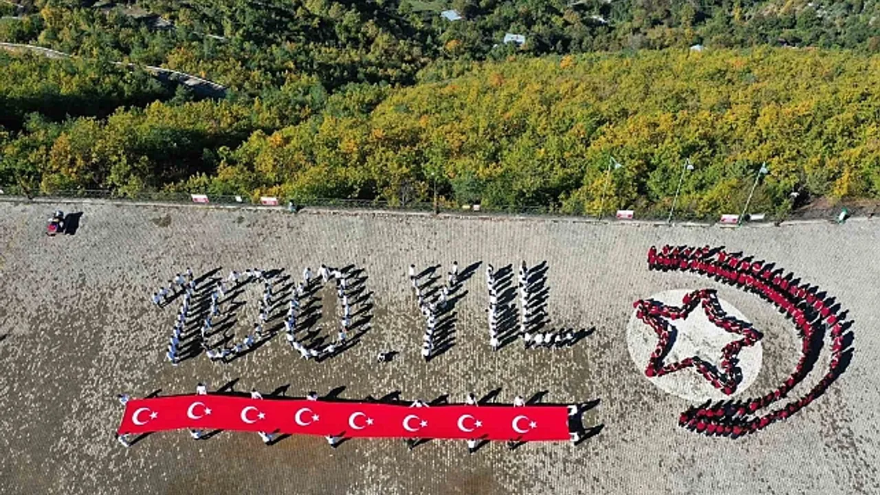Artvin Milli Eğitim Müdürlüğünce Cumhuriyetin 100. Yıl kutlama etkinlikleri kapsamında "Ay Yıldızlı Bayrak" ve "100. Yıl" kareografi çalışması yapıldı.
