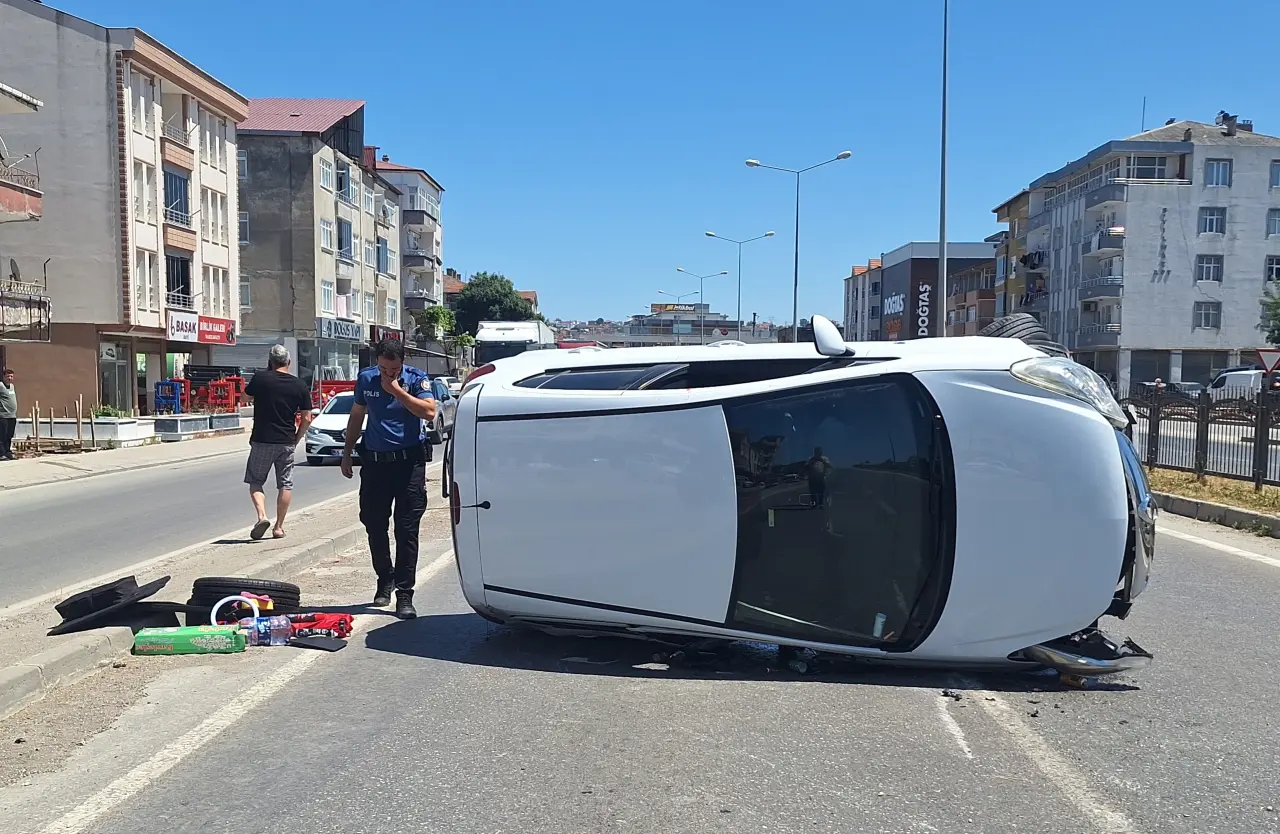 Samsun’un Bafra ilçesinde kontrolden çıkan bir otomobilin devrilmesi sonucu meydana gelen kazada, iki kişi yaralandı.Edinilen bilgilere göre, Semanur Çalışkan (24) idaresindeki 55 ASR 107 plakalı otomobil, Samsun-Sinop kara yolu Bahçeler Mahallesi mevkisinde seyir halindeyken refüjdeki bariyere çarptı. Çarpmanın etkisiyle araç karşı şeride geçerek devrildi.