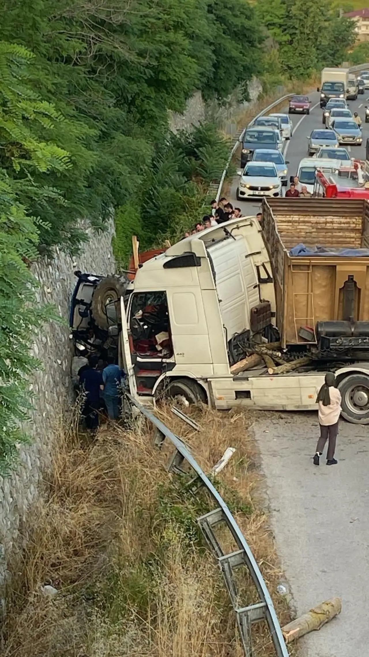 Çarpmanın etkisiyle traktör metrelerce sürüklendi ve yol kenarındaki istinat duvarına sıkıştı. Olay yerine sağlık, itfaiye ve jandarma ekipleri sevk edildi. Traktör sürücüsü Sebahattin Arslan, sıkıştığı yerden vinç yardımıyla çıkarıldı. Olay yerinde ilk müdahalesi yapılan Arslan’ın durumunun ağır olduğu öğrenildi.