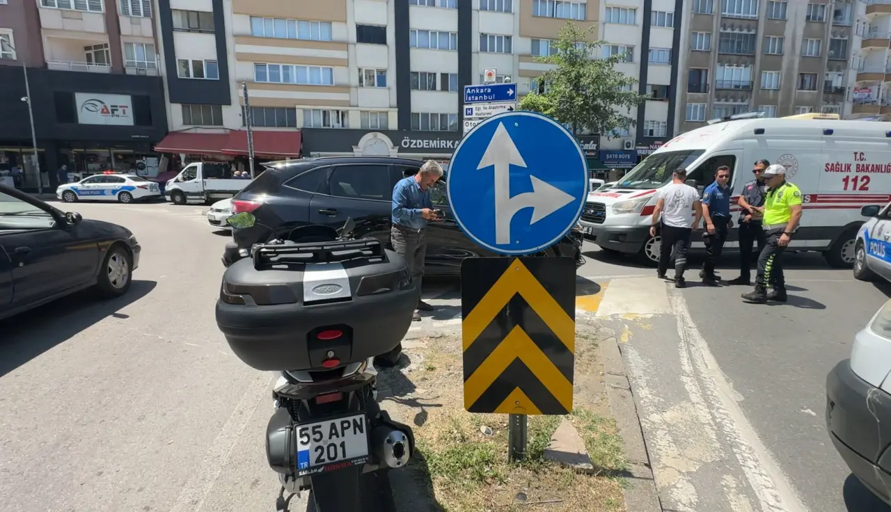 Samsun’un İlkadım ilçesindeki 100. Yıl Bulvarı Ata Kavşağı, öğle saatlerinde motosiklet-otomobil çarpışmasına sahne oldu. Plakası 55 APN 201 olan motosiklet, kavşakta sola dönmek isteyen 55 ALH 332 plakalı SUV tipi araçla çarpıştı.