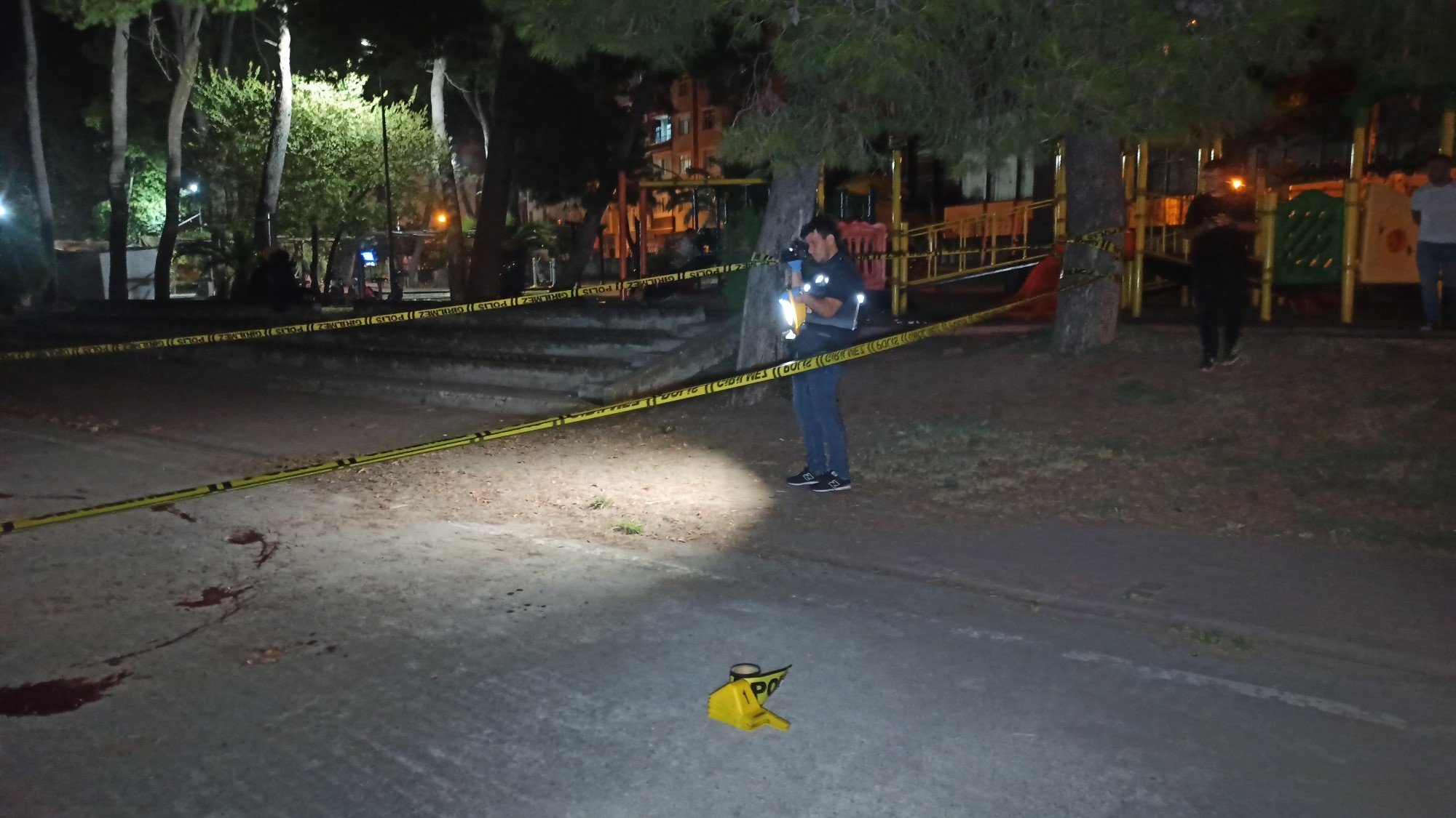 Görgü tanıkları, 2 kişinin parktan koşarak Ali Kale Caddesi'ne doğru kaçtıklarını söyledi. Polis ekipleri olayı gerçekleştiren kişileri yakalamak için çalışma başlattı.
