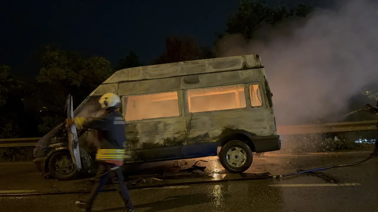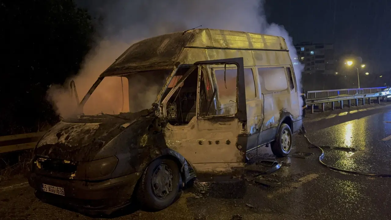 Samsun’un İlkadım ilçesinde gece saat 00.30 sıralarında seyir halindeki bir minibüste yangın çıktı. Araçta başlayan yangın kısa sürede minibüsü sararken, sürücü Emre Aktaş, durumu fark ederek minibüsü kenara çekip araçtan inerek canını kurtardı. Yangın, çevrede büyük paniğe neden oldu.