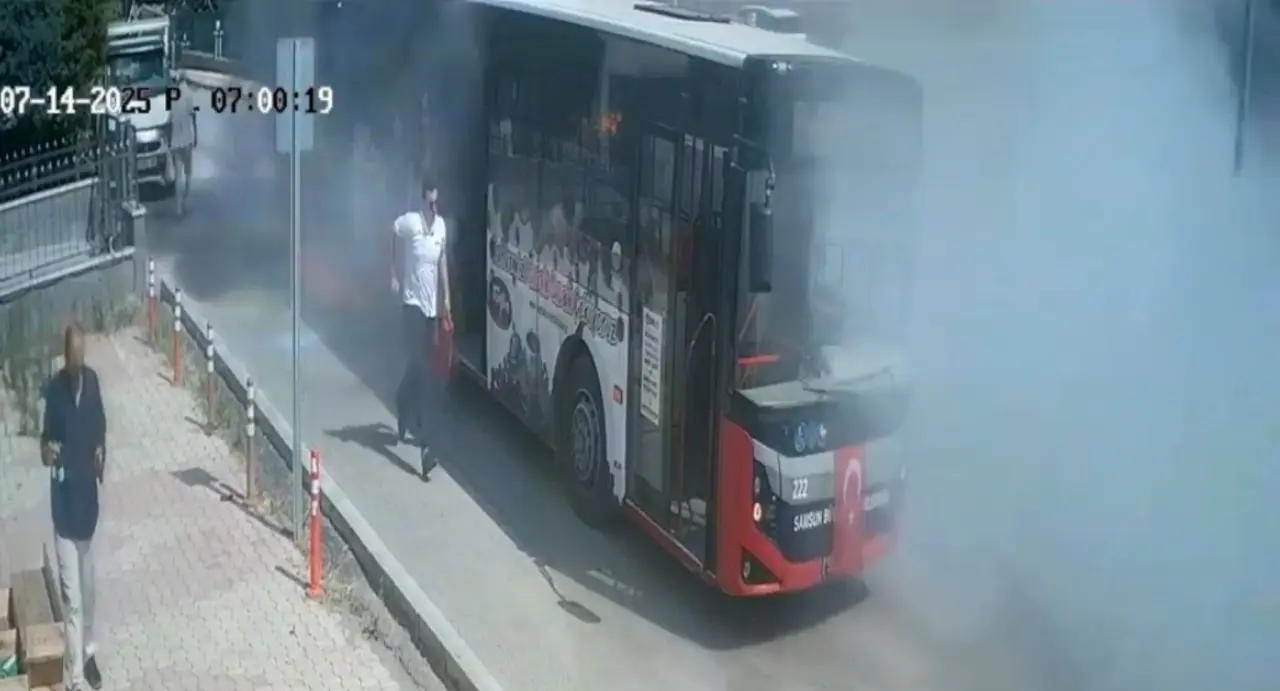 Samsun’un Atakum ilçesi Küçükkolpınar Mahallesi 641. Sokak’ta yaşanan olayda, Samsun Büyükşehir Belediyesi’ne ait ve Samulaş tarafından işletilen 55 BBB 90 plakalı belediye otobüsü, durakta yolcu aldığı esnada aniden yanmaya başladı.Edinilen bilgilere göre, yangının motor kısmından çıktığı ve ilk belirlemelere göre elektrik aksamından kaynaklandığı tahmin ediliyor. Alevler çok kısa sürede otobüsün tamamını sararken, olay anında içeride yaklaşık 25 yolcunun bulunduğu öğrenildi.