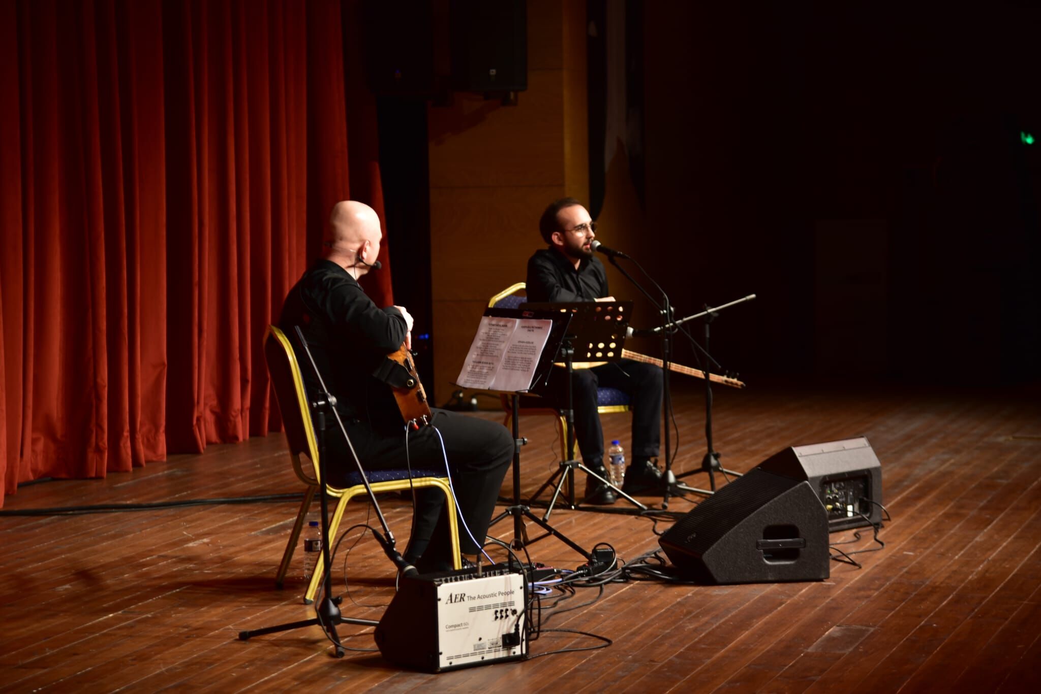 Ata Sahne Sanat Merkezinde ’Ulusal Egemenlik Yolunda Türkülerimiz’ başlığıyla düzenlenen konser, yoğun katılımla gerçekleştirildi. Ankara Müzik ve Güzel Sanatlar Üniversitesinde akademik çalışmalarına devam eden Dr. Öğr. Üyesi Salih Gündoğdu ve Doç. Dr. Sinan Ayyıldız, programda farklı yörelerden birbirinden seçkin eserler seslendirdi. İkili ‘Ayaş Yolları’, ‘Altım Üstüm Kaç Kuruşluk’, ‘Divaneyim’ gibi türkülerin yanı sıra bağlama resitalleri ile merkezde yöresel rüzgarlar estirdi. Güçlü yorumlarıyla büyük beğeni toplayan sanatçılar, seyirciler tarafından uzun süre alkışlandı.