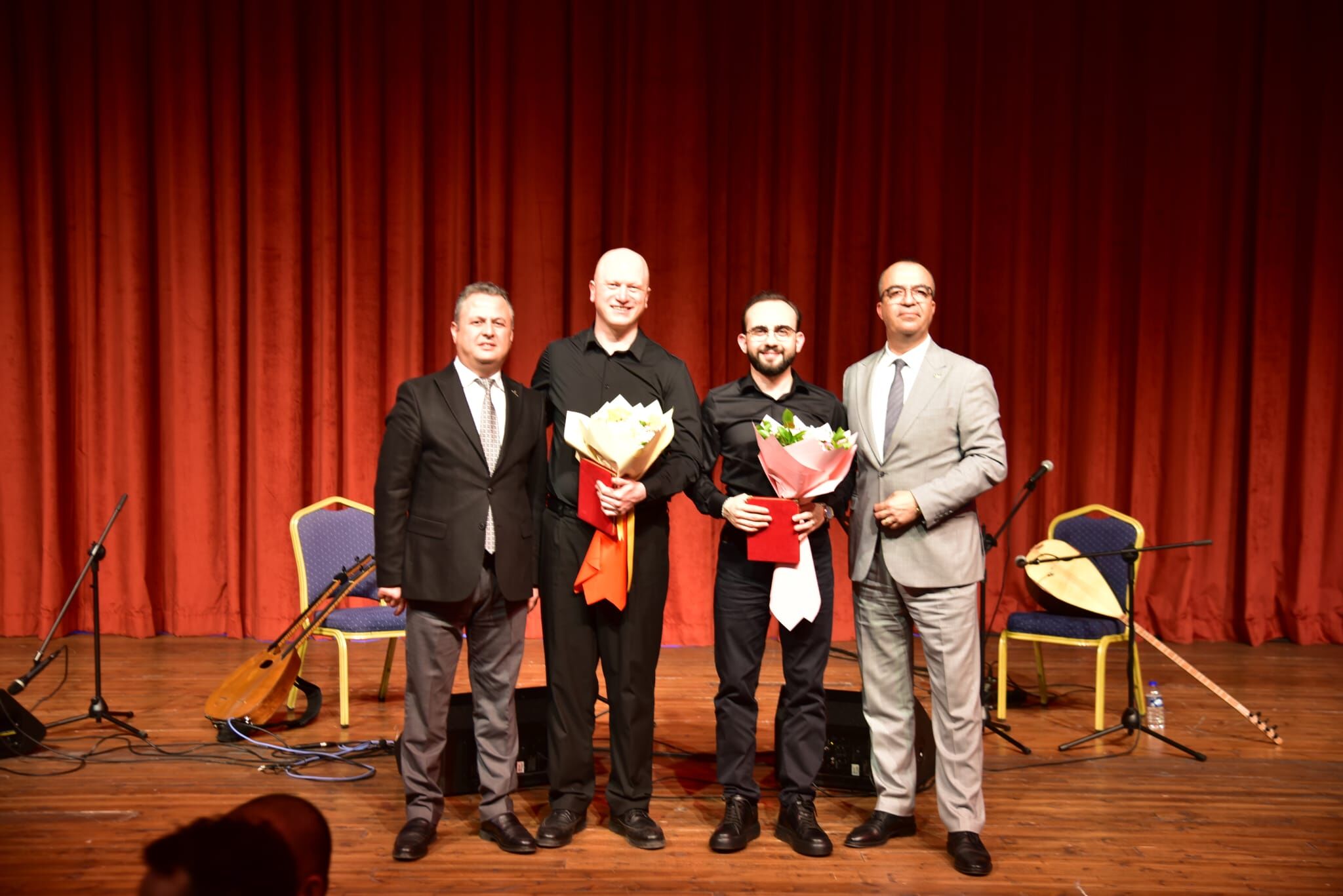 Programda yaptığı konuşmada konsere gösterilen ilgiden duyduğu memnuniyeti ifade eden Dr. Öğr. Üyesi Salih Gündoğdu,“Sizlerle, bir arada olmak çok güzel. Sinan hocamla kendimizi müziğe bıraktık. Uzun zamandır beraber çalıyoruz. Umarız size yansıtabilmişizdir. Nice programlarda buluşmayı diliyoruz” dedi. Doç. Dr. Sinan Ayyıldız da ”Uzun yıllar sonra, kendi memleketimde çalabildiğim için çok mutluyum. Dünyanın birçok yerinde çalıyoruz ama sizlerle bu müzikleri, duyguları paylaşmanın değeri çok daha farklı ve üstte. Ayağınıza sağlık. Başkanımız Serhat Türkel başta olmak üzere organizasyonda, emeği geçen herkese çok teşekkür ediyorum.” cümlelerini kaydetti.