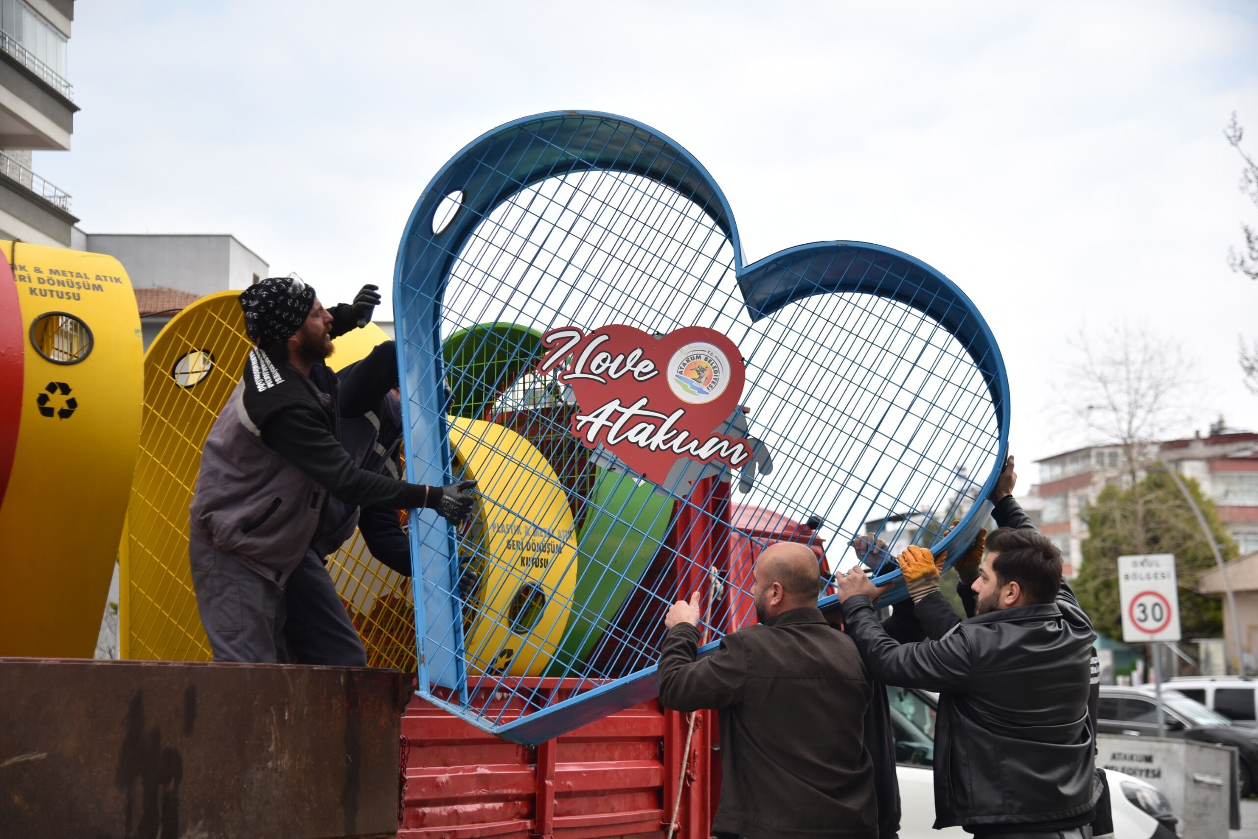 Belediyenin Makine İkmal Bakım ve Onarım Müdürlüğü tarafından üretilen rengarenk, ‘I love Atakum’ yazılı geri dönüşüm kutuları, çevre farkındalığı yaratırken görünümüyle kentte görsel şölen yaşatıyor. Vatandaşlar, metal, plastik, ambalaj ve diğer geri dönüştürülebilir atıkları, atıkların isminin yazılı olduğu kutulara atarak hem kentin atık yönetimine hem de doğanın korunmasına katkı sağlayacak.