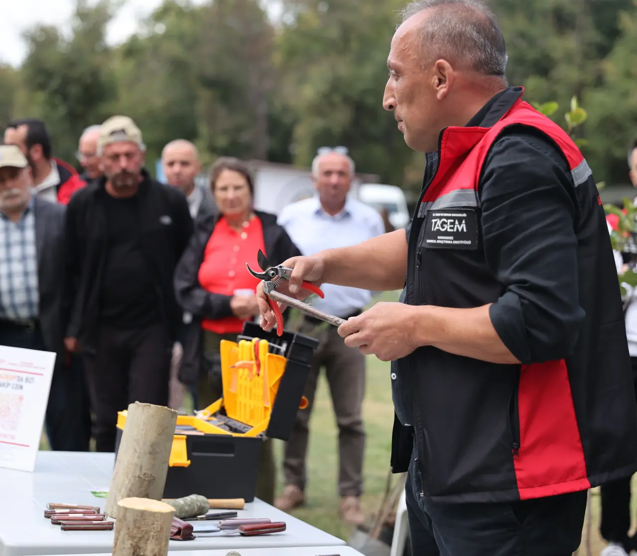 Katılımcılar için düzenlenen aşı uygulama yarışması renkli görüntülere sahne olurken, yarışmacılara incir ve elma fidanları hediye edildi.