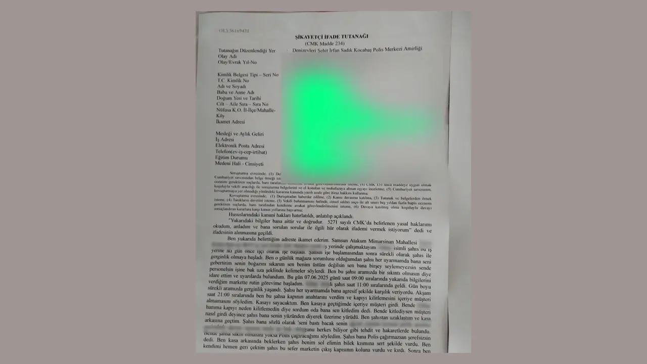 “Yeni çalışanla sabah saatlerinden itibaren çeşitli konularda tartışmalar yaşadık. Yaptığım uyarıları dikkate almıyor, bana hakaret ediyordu. Akşam kapanış saatine doğru, içeriye müşteri girmemesi için kapıyı kilitlemesini söyledim. Ancak müşteri girdikten sonra neden kapıyı kilitlemediğini sorduğumda, üzerime yürüyerek hakaret etti ve bilek kısmıma sert bir şekilde vurdu. Ardından marketin çıkış kapısının kolunu kırdı.”