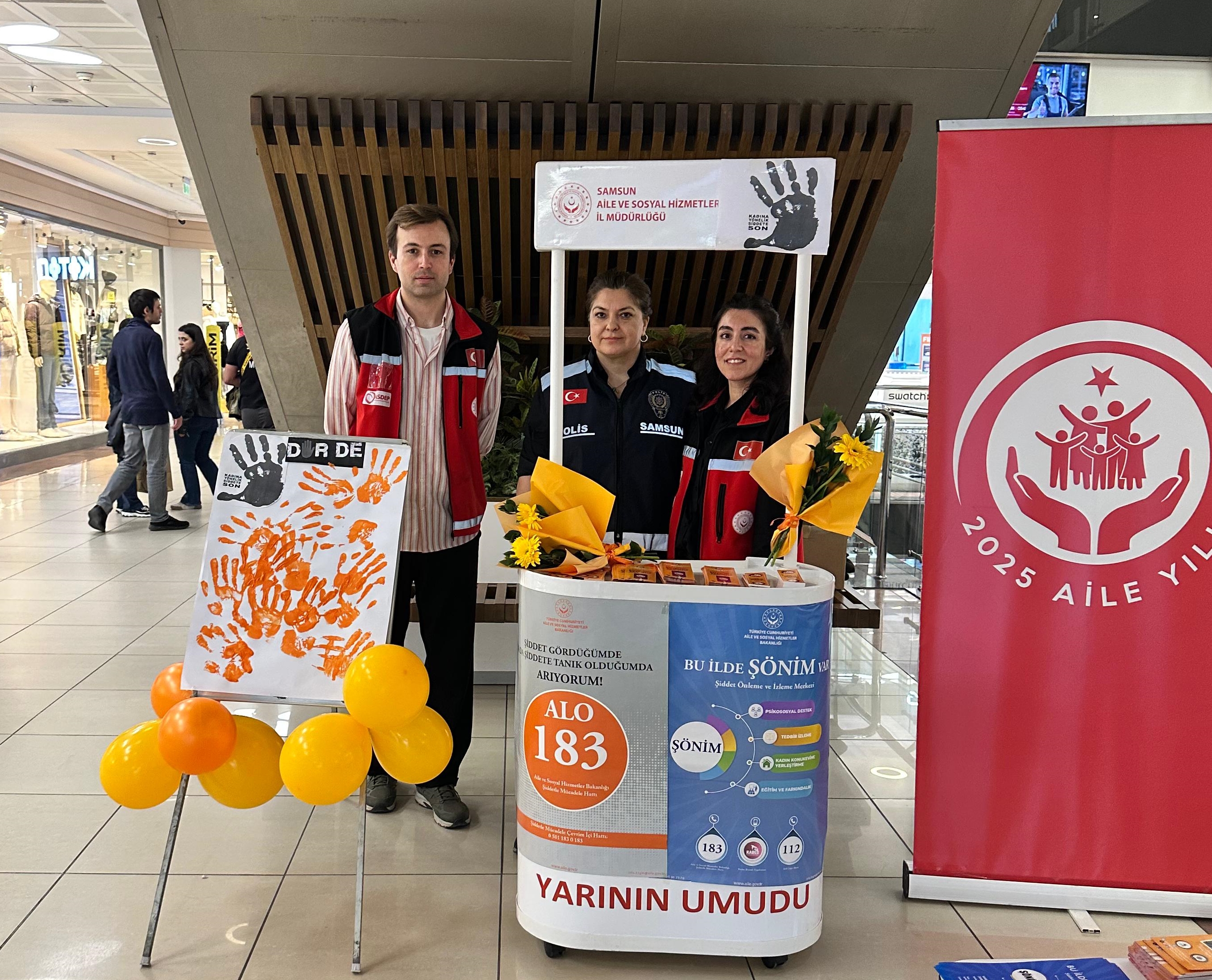 Samsun Aile ve Sosyal Hizmetler İl Müdürlüğü Atakum Şehit Muharrem Kılıç Sosyal Hizmet Merkezi tarafından Yeşilyurt AVM’de kurulan stand, kadına yönelik şiddetin görünürlüğünü artırmayı hedefledi. Etkinlik kapsamında ziyaretçilere turuncu renge vurgu yapılırken, şiddetle mücadelede bireysel farkındalık artırmaya yönelik yönlendirmeler sunuldu.